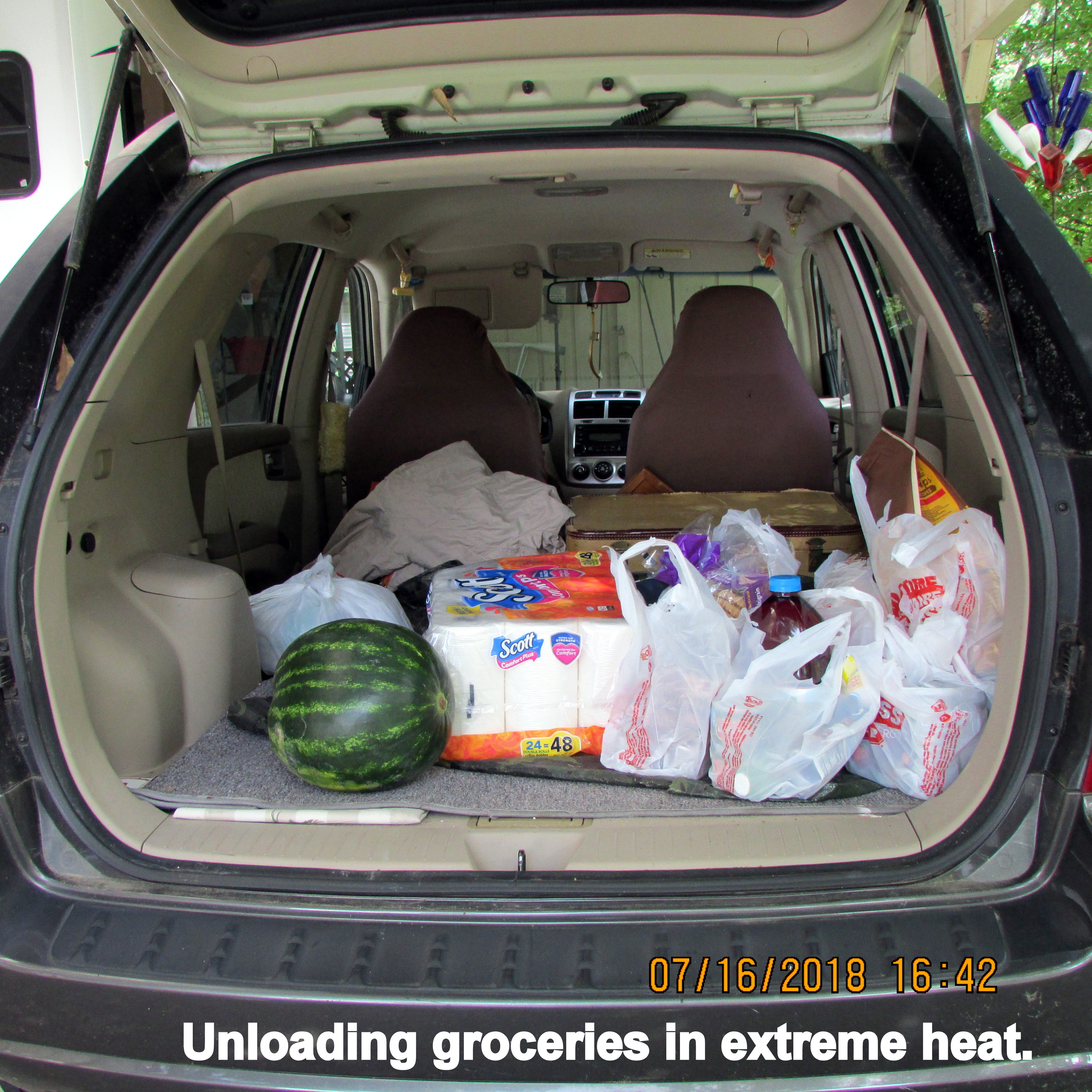 Six hours away from home–in and out of extreme heat. Between doctor appointments and grocery shopping, I was in the car hot as an oven.