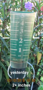 Shortly after storing perishables in the refrigerator, in the laundry room, more heavy rain. I’m “high and dry” and “fat and sassy.”