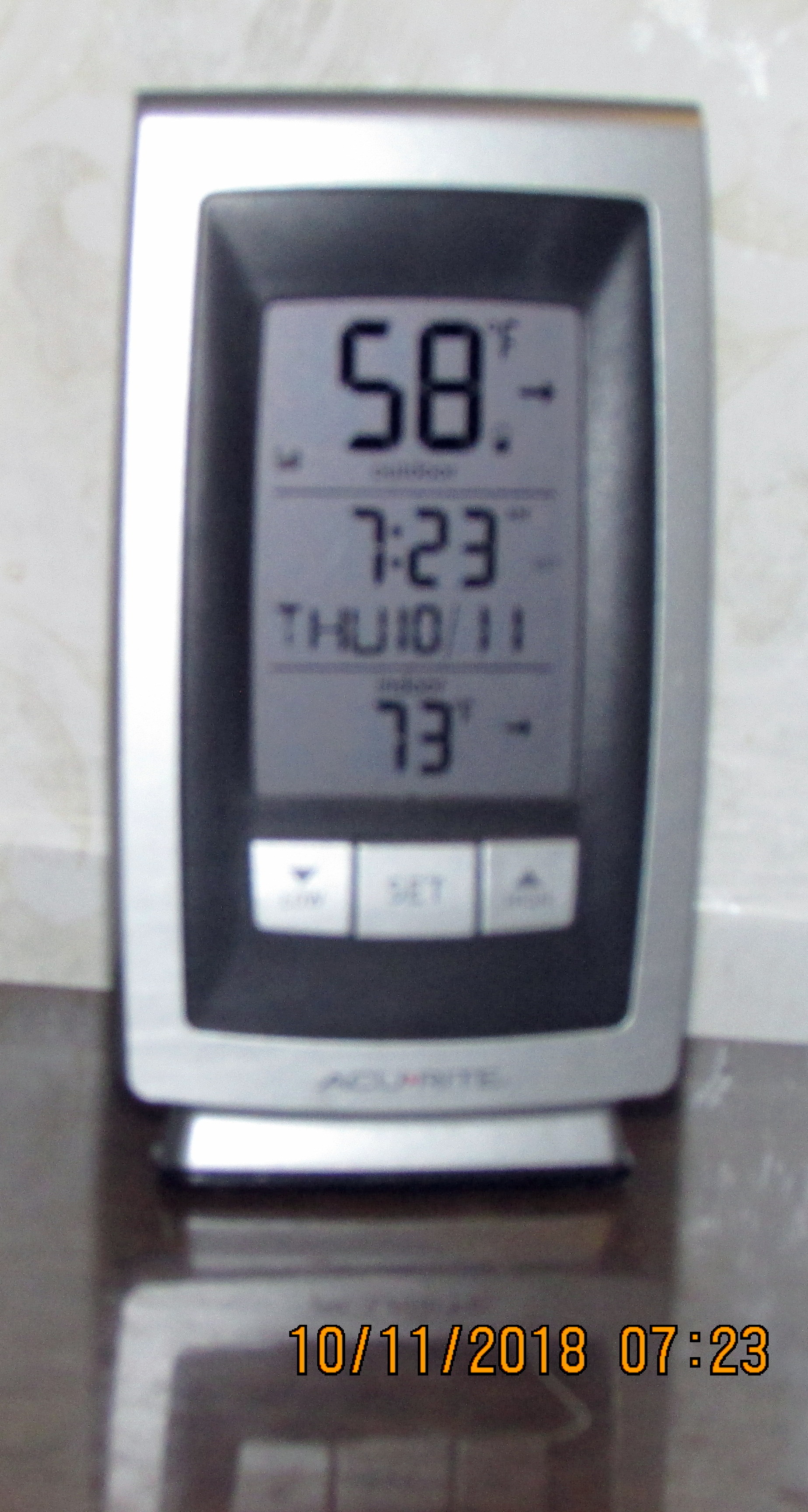 Blog title is the statement of Houston TV meteorologist at 7:20 AM. Last night, during 10:00 PM news, TV meteorologist said “We haven’t seen these low temperatures since early May.” (Five months of extreme heat and humidity!) My trailer home is “cool” and a robe feels good. Soon, I may need the furnace? (I’m prepared… with new tank and 120 gallons of propane.)
