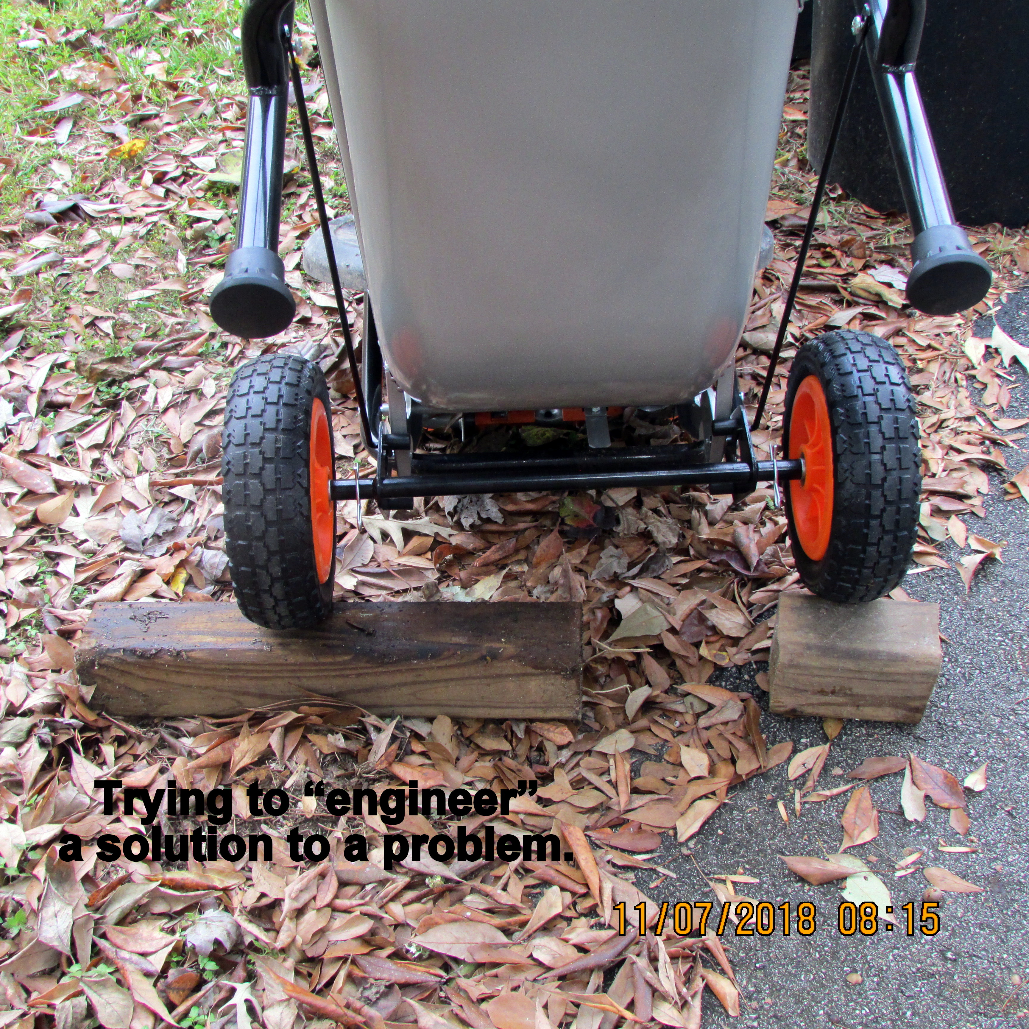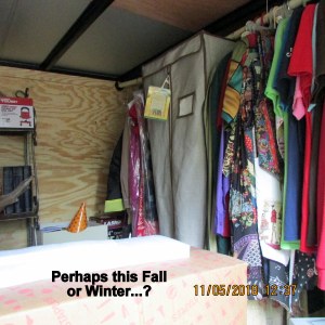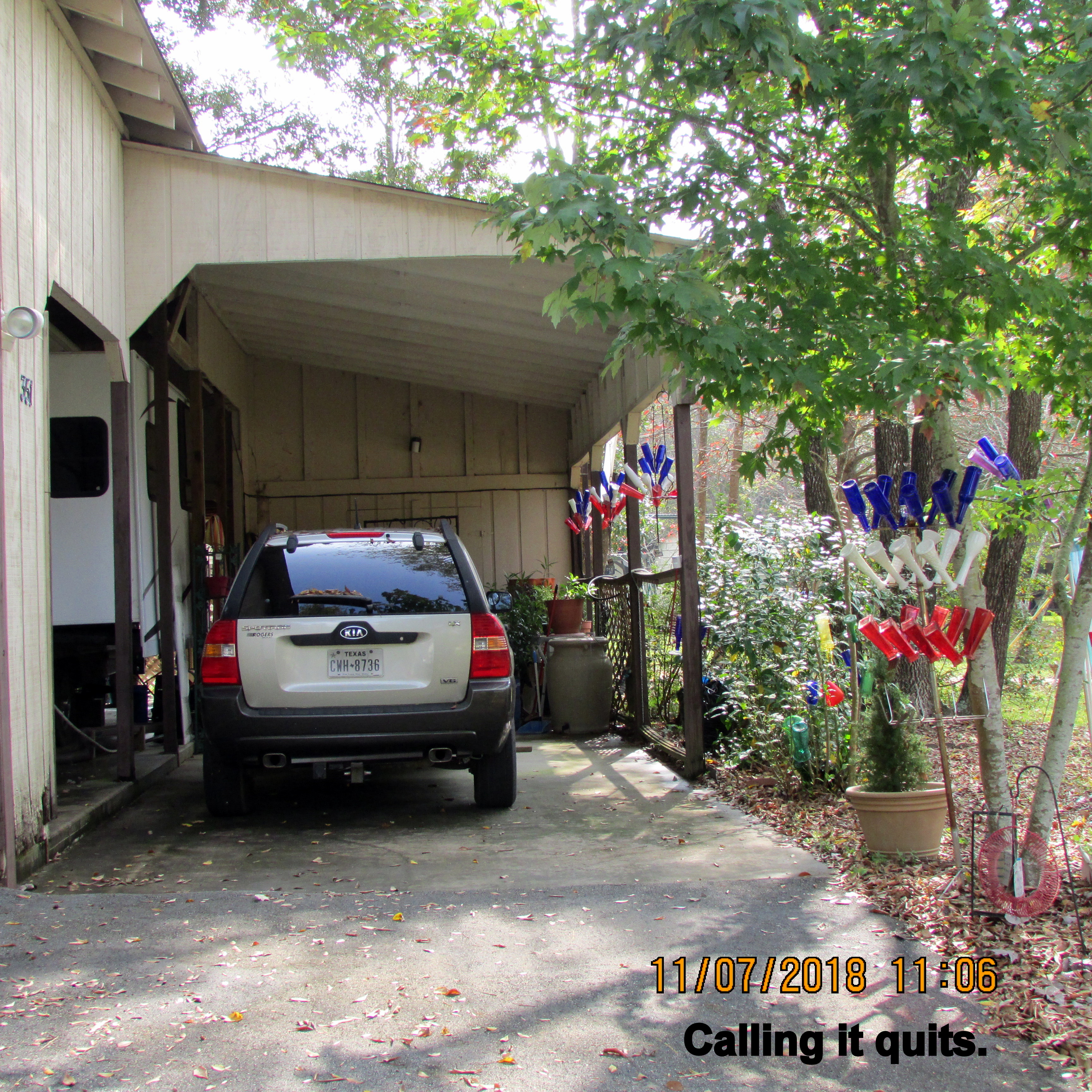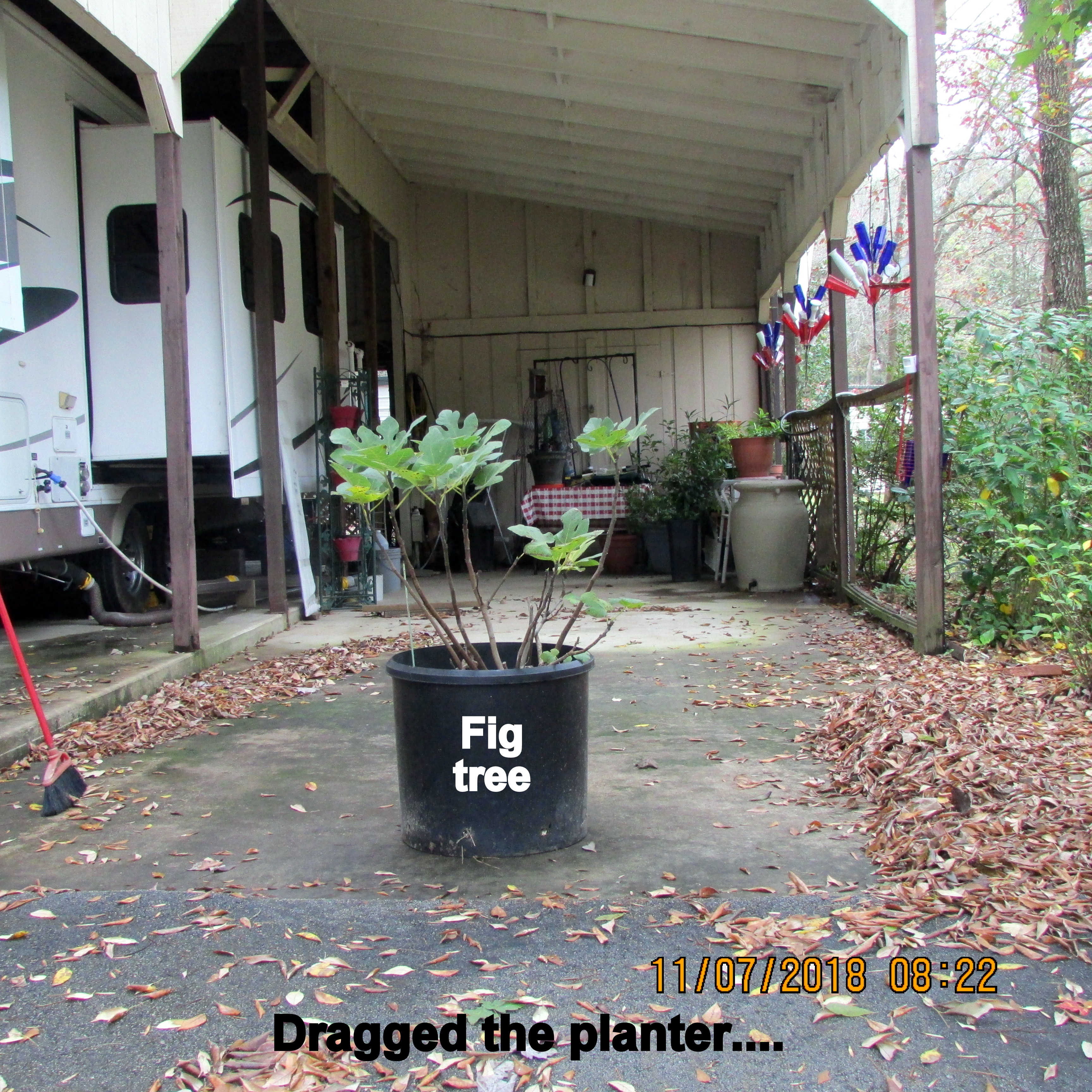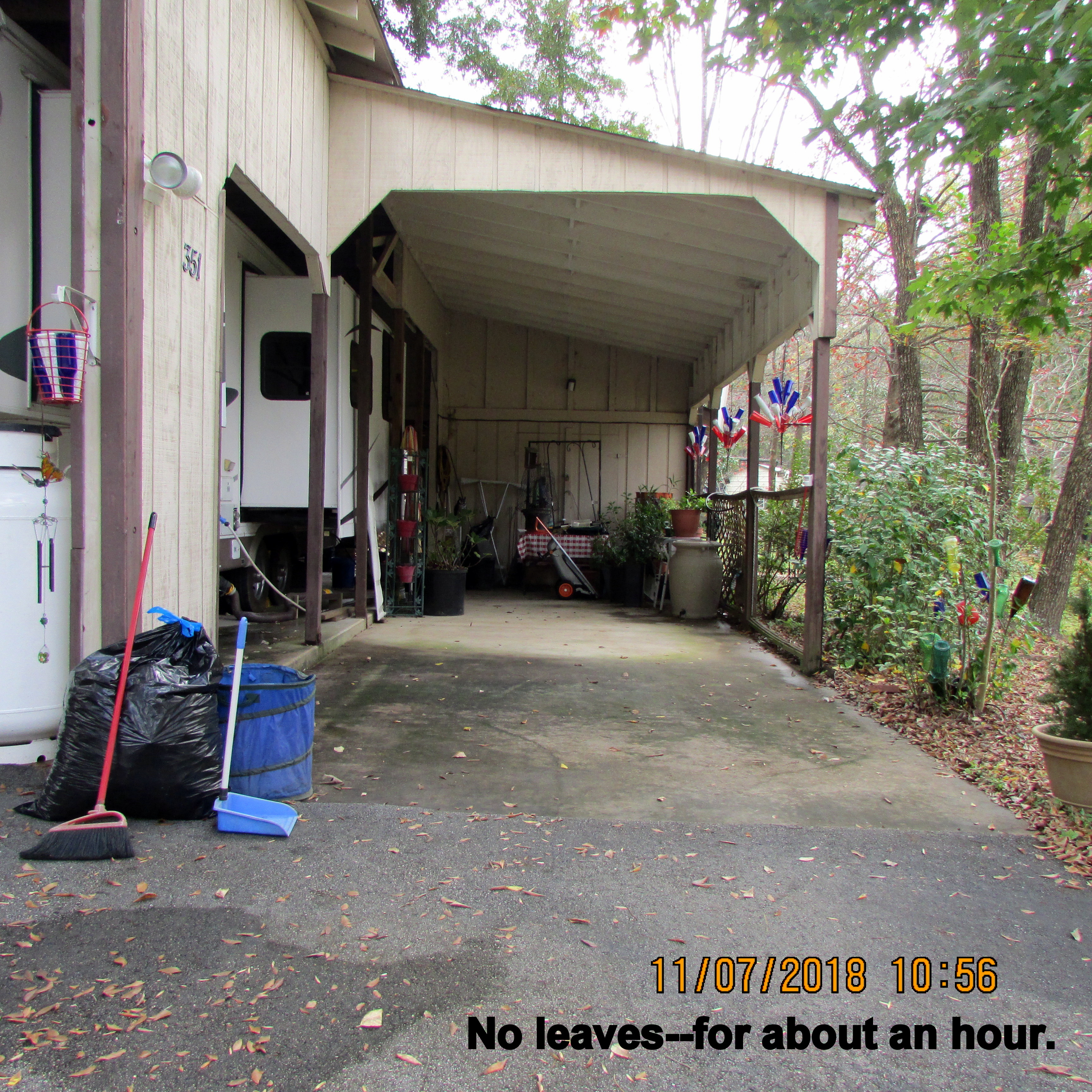 Beautiful day; the yard beckons. I swept leaves and deposited them around plants, in planters (excellent mulch). Shifted things (yard sale items) so more convenient for planters. One day soon, I’ll move the LARGE planters with Worx Aerocart.