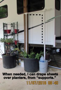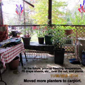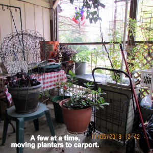 Premature perhaps, to start moving the planters, but my limited energy motivates me to shift a few at a time. Most are being pruned.