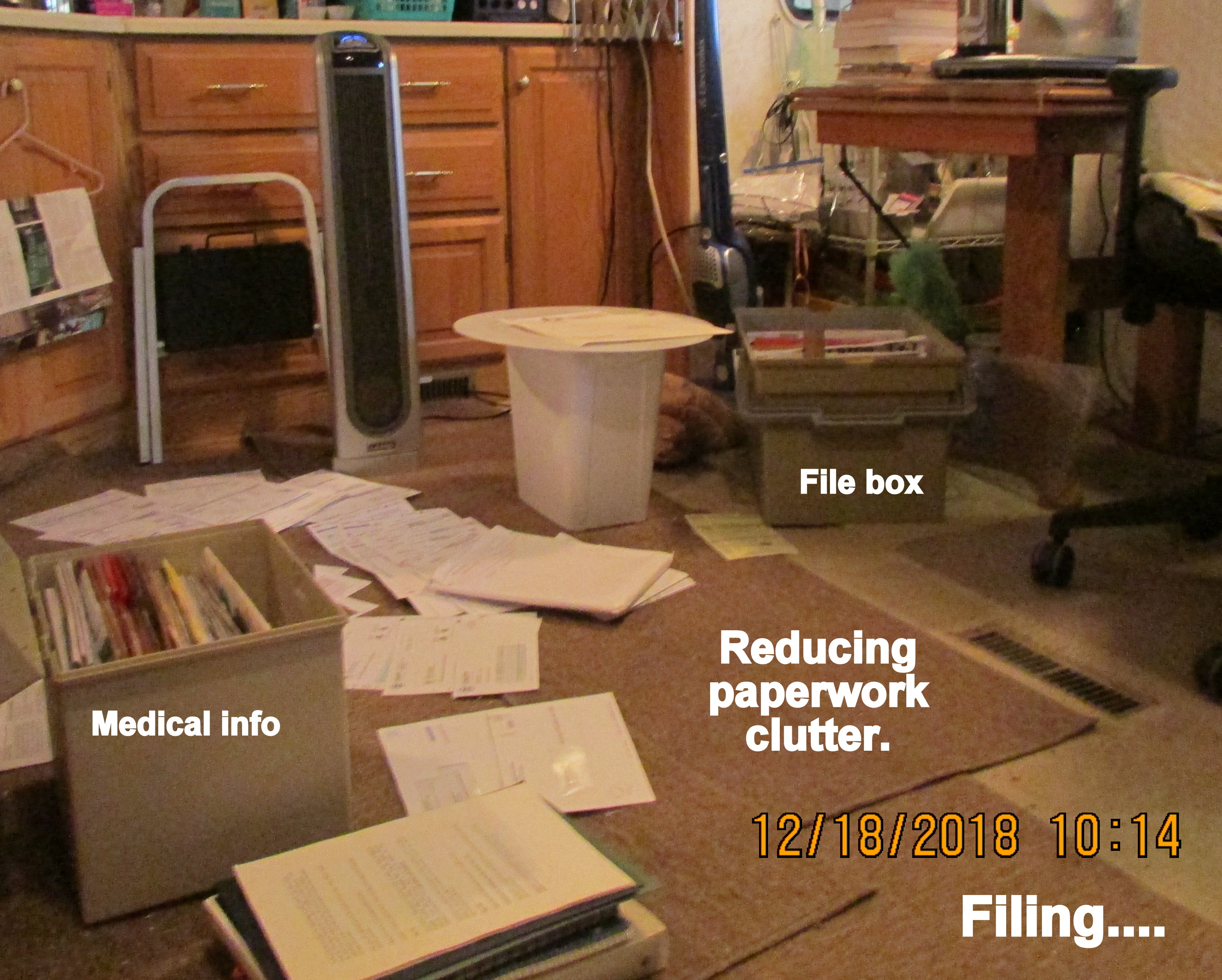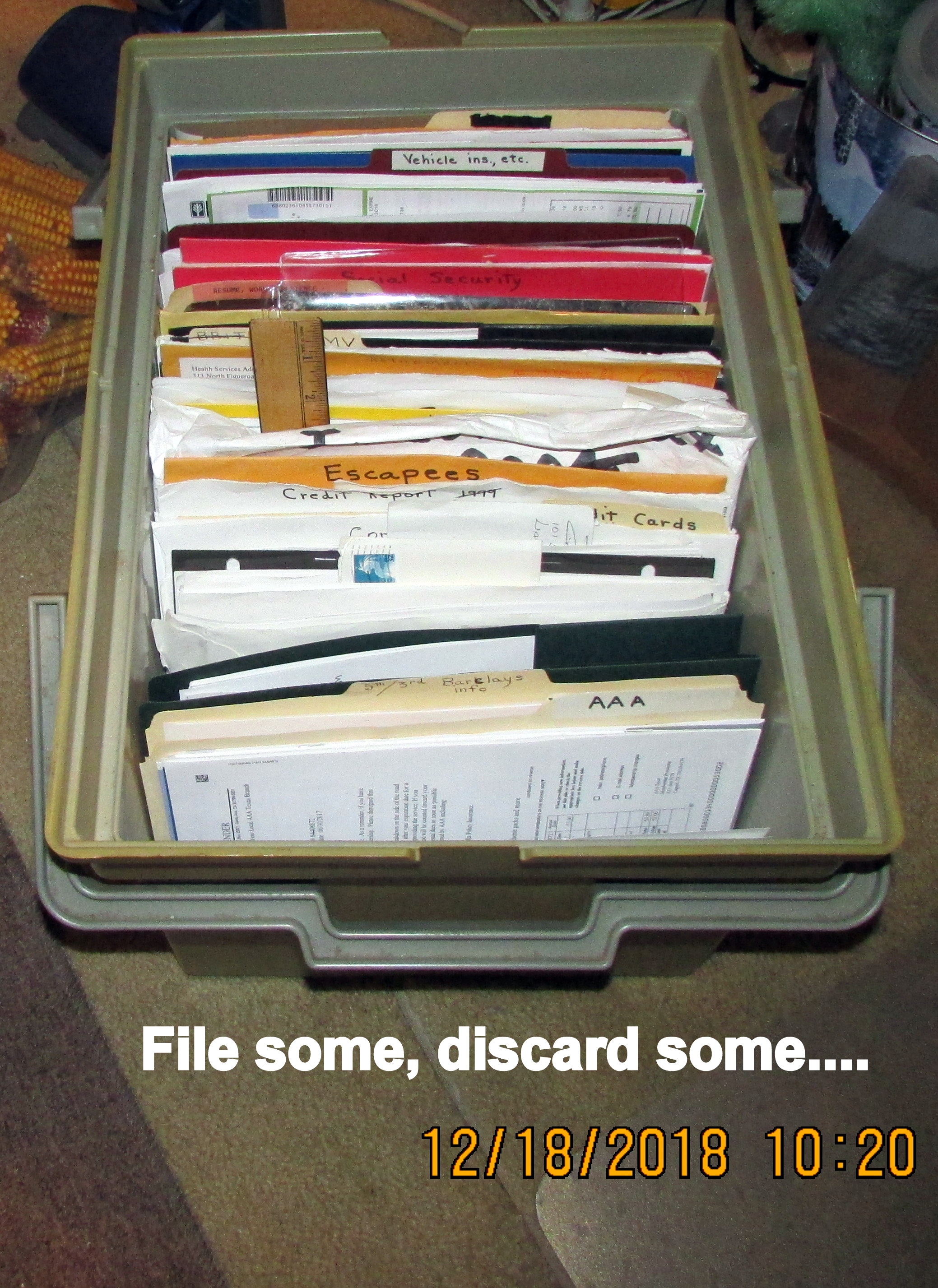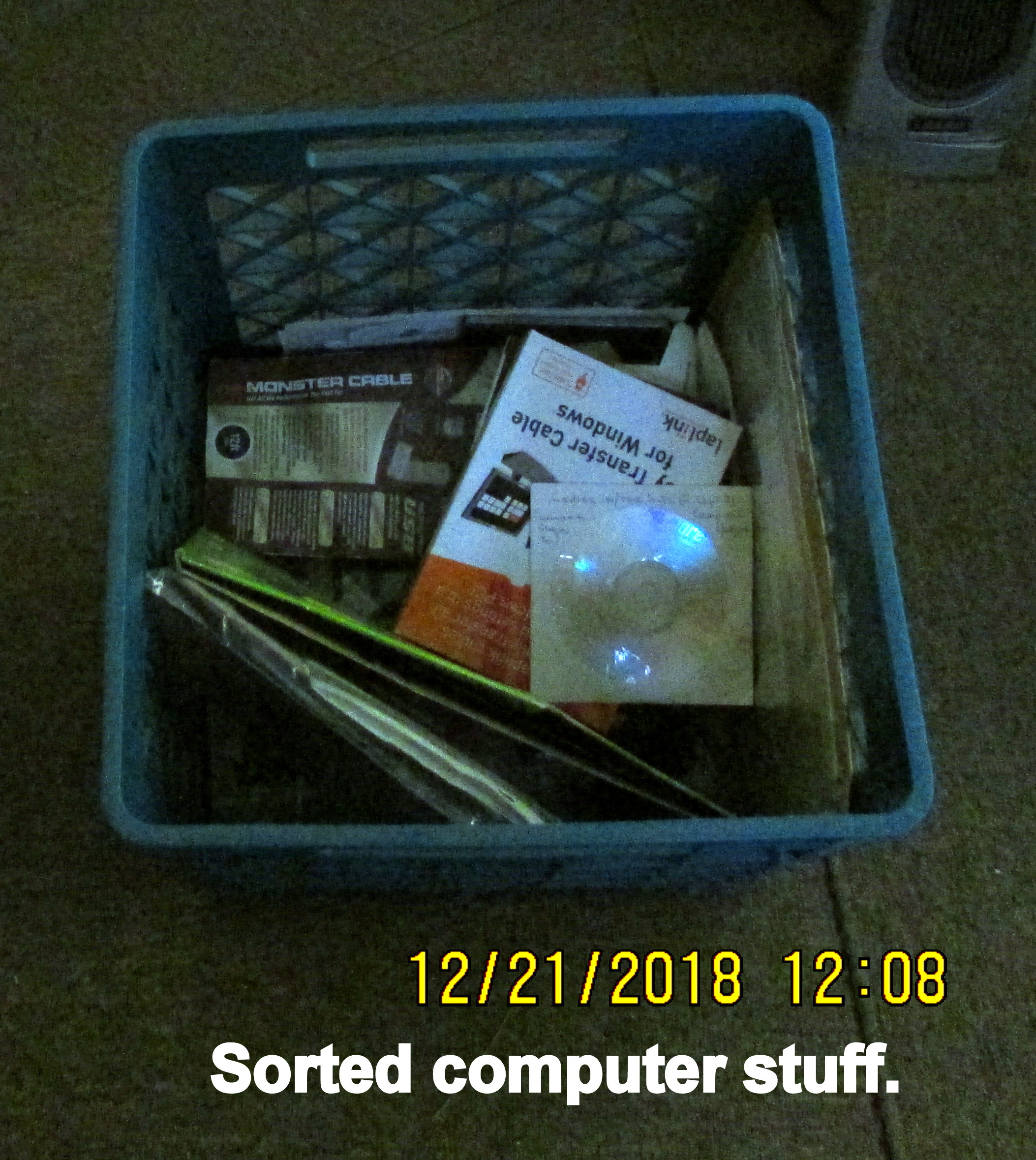 Downsizing in progress!! (Almost all day.) Another box filled with items for Habitat for Humanity thrift store. Lots of old (but good) electronics. Maybe somebody can put to good use? ~~ As soon as the weather is pleasant, I’ll approach “decision-making” in the cargo trailer.