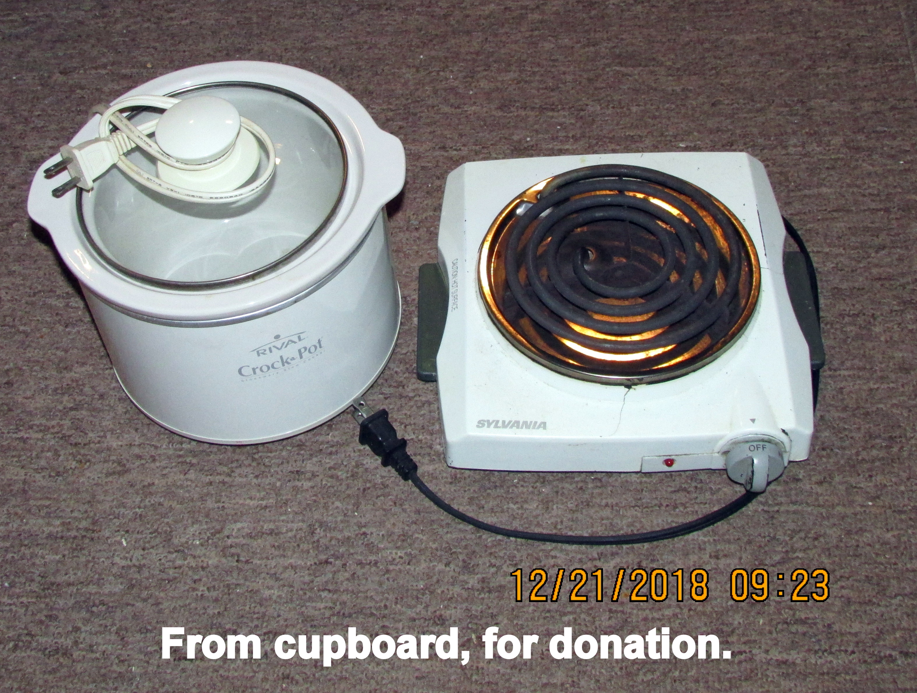 Crock pot and hot plate: I might need them some day?! ~~ Vases: Saved a few, donated a few. ~~ Tea pot never used but a sentimental treasure!!
