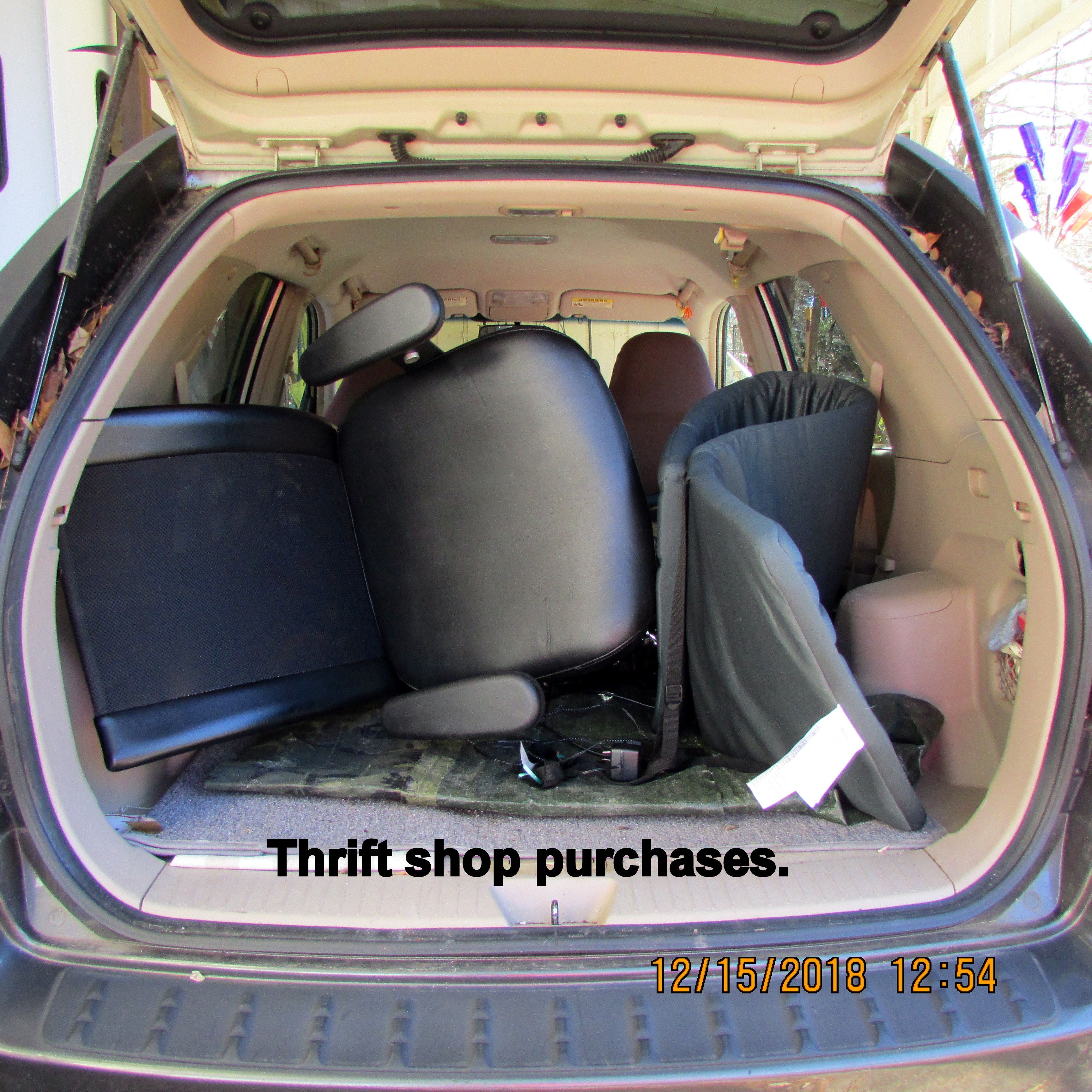 Not what I expected!! It was a special trip into Livingston, to Habitat for Humanity ReStore, to deliver (donate) a lot of Christmas decorations. I took the items in the front door, put them in a shopping cart, and wheeled all to the back of the store (where they price items). I hadn’t planned to “look” (my purse was still in the car). My “walk” took me past a wide variety of chairs. When I returned to the entrance, and cashier, I was rolling the office chair. No price tag (but learned a modest $30.00). I went back for the Dr. Scholl’s messager (with $8.00 price tag) and plugged it in to check if “it worked.” Immediately, vibration from head to toe!! With tax, the total just shy of $32.00 and I gave them $42.00. In my “mind’s eye,” the trip to Livingston was not about “giving.” My Heavenly Father wanted me to “receive” a “more comfortable” computer chair, and the messager. The decades-old “other” chair is already in the KIA for next trip to Habitat thrift shop. (I’m intent upon “downsizing.”)