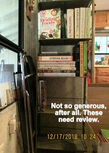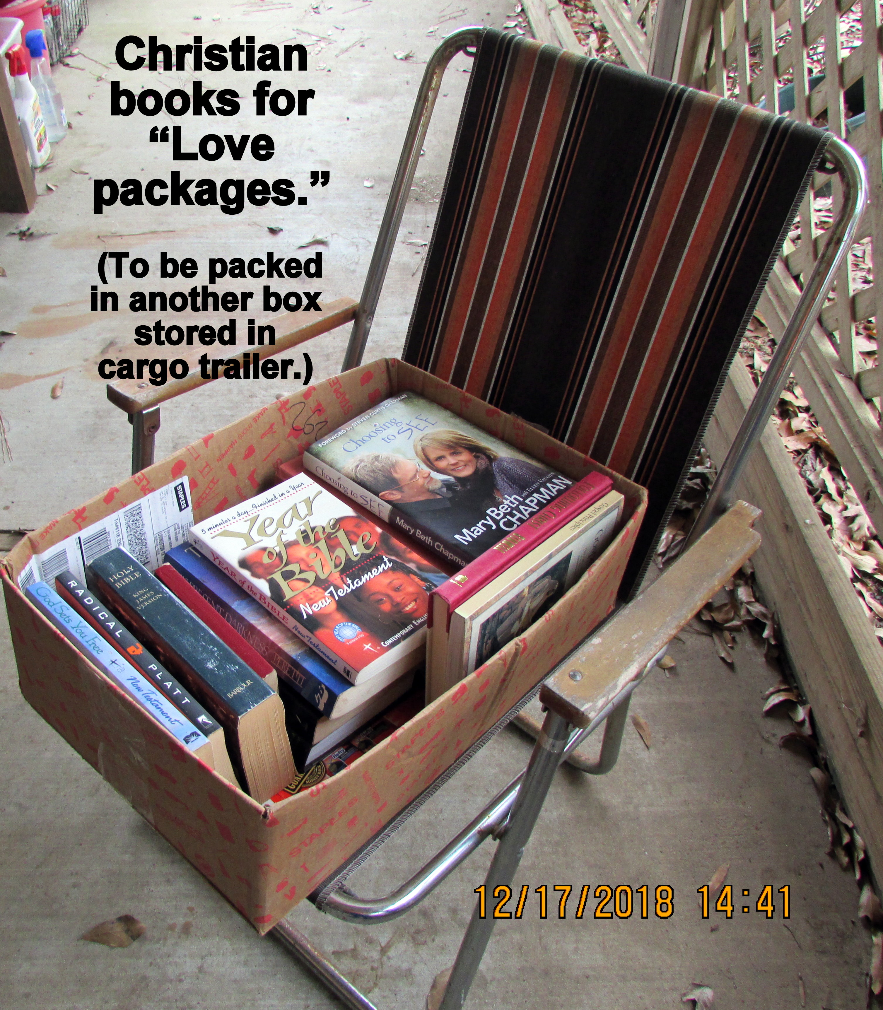 …begins with one step.” Over the years, I’ve donated books from my huge library. Fifty boxes of family history to Brethren Heritage Center, Brookville, Ohio, (2004). Seventeen boxes of health and nutrition books to my chiropractor, Charlotte, North Carolina, 2013. Two boxes of Christian books and magazines, 2016-2017, to Love Packages. Grocery bag full of health and nutrition books to health food store, Livingston, Texas, December 15th. Now (like saying “goodbye” to old friends), I’m packing my remaining health books and will donate to the local health food store (for their library). Also few remaining Christian books to Love Packages.