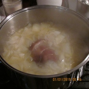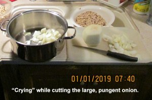 Food preparation, washing dishes, watching the Rose Parade. Complaint: TOO MANY COMMERCIALS!!! I reminisce about the “good old days” when KTLA, Los Angeles television, never left the parade. We were able to see every entry. ~~ Habitually, I only use the center burner on my cook stove. The Kale will be steamed later… and thoroughly enjoyed.