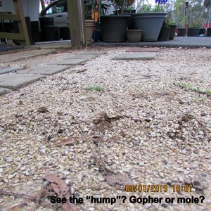 “Critter” in my yard !! Mar1 by Lorraine Frantz Edwards As if I don’t have enough work to do in my yard, now I have a gopher or mole? Noticed this when I walked to the “snail” mail box. Share this: Click to share on X (Opens in new window) X Click to share on Facebook (Opens in new window) Facebook Like Loading...
