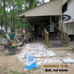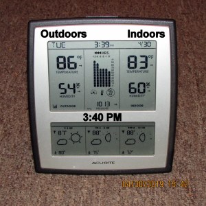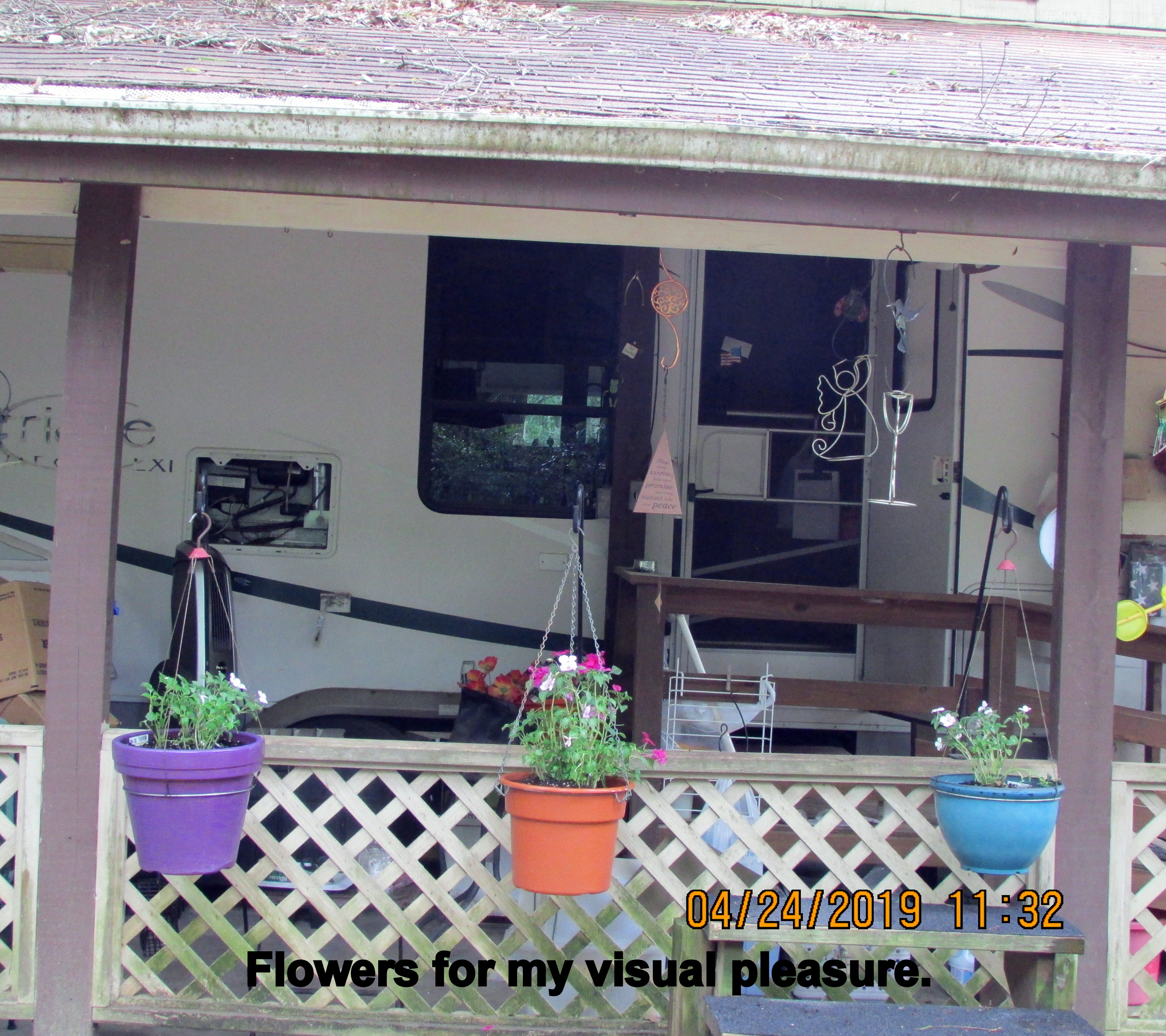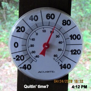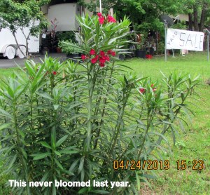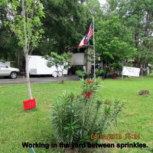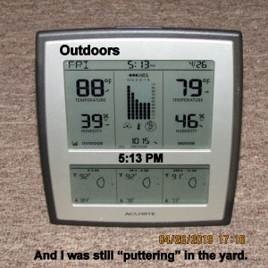 So miserably HOT inside my trailer home. I started the fan on the air-conditioner (after 3:40) and hope it will cool me off a little. It’s the first of the month (almost) so I fertilized all the plants. Pushed myself to “do” but “too tired” to fix a salad (late lunch). Picked up more limbs. I would have burned the large pile… but “too windy.” Because of the heat, and humidity, I deliberately chose to spend time in the yard.