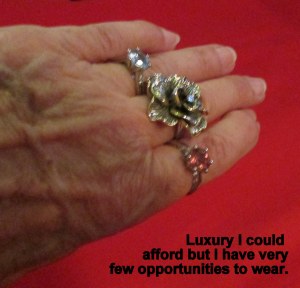 Preparing for the cruise, trying on pretty (old, neglected) clothes, packing jewelry, I felt “ladylike.” Seated in a fine dining room, linen tablecloth, fine dishes, and glassware, I was elevated beyond the shabby clothes worn at home working in my garden. I was no longer an “orphan adult” looking for her “Intentional Community.”
