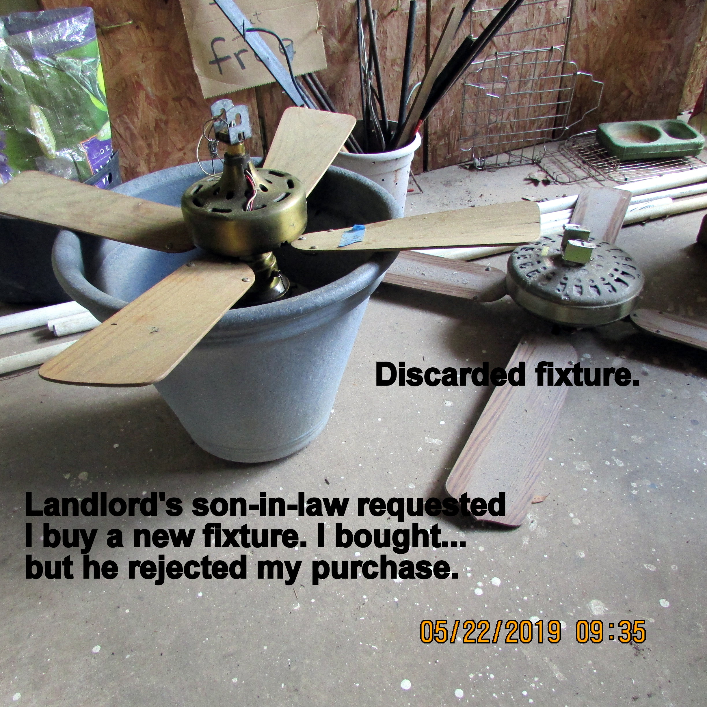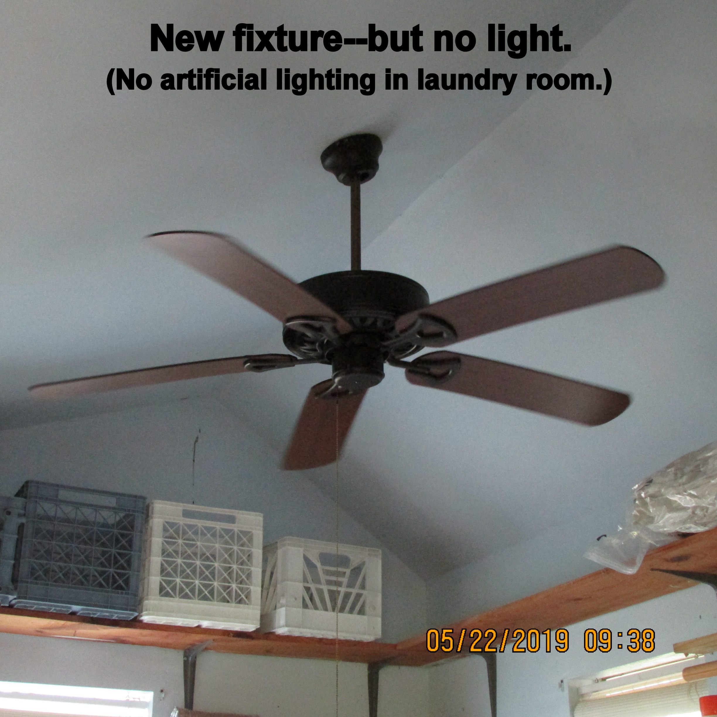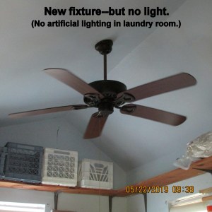 Many months ago, I hired a man to take down, and repair, the ceiling fixture in the laundry room. The “Casablanca fan” came down but the repairman never returned to complete the task. My landlady accused me of stealing the fixture. In February, her son-in-law told me he would hang… if I bought another fan. I made the purchase a couple of days later but “Sonny” did not return until mid-May. My fixture and two ladders were adjacent to the laundry room door. After my cruise, I found a new fan in the laundry room and my fixture ignored. My item had fan and light; the new fixture is fan only. Due to my limited vision, even during daylight hours, I need a flashlight to read the dial on the washer and dryer. ~~ **The measure of my worth?!**