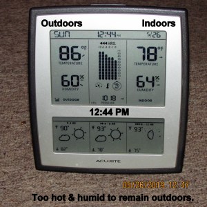Early this morning, I was in the yard watering the plants. Back indoors at 6:50 just as the TV “anchorman” asked the meteorologist “When does it get cool again?” The answer: “October 22nd.” Check my blog messages; I think I recently said hot and humid until Halloween.