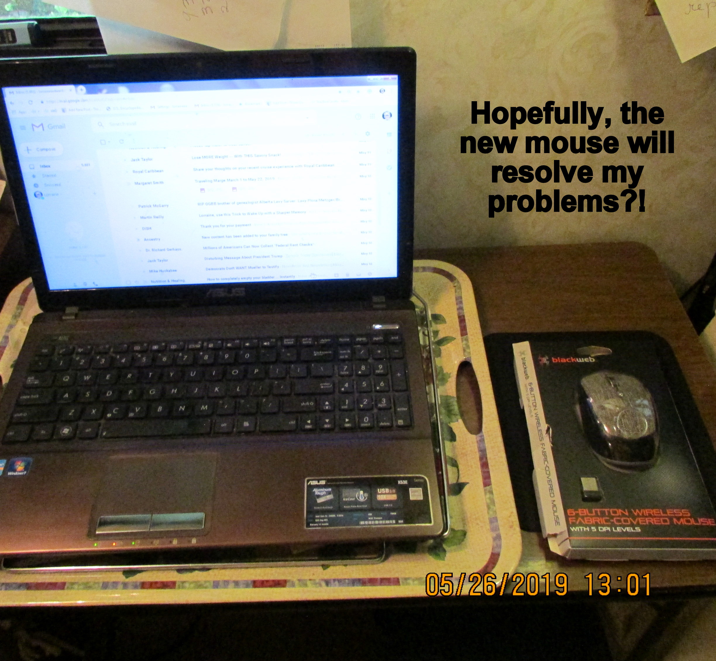 On Friday, I drove to my “computer guy” in Onalaska and I’m confident he is a magician!! My computer was fixed the minute I walked in the door. No more problems. It was embarrassing to sit at the table and attempt to display the troublesome features. Tim just sat there and grinned. I had been struggling with the laptop built-in mouse-pad but working fine in the “magic castle.” I was advised to stop at Walmart (on my way home) and get a mouse.