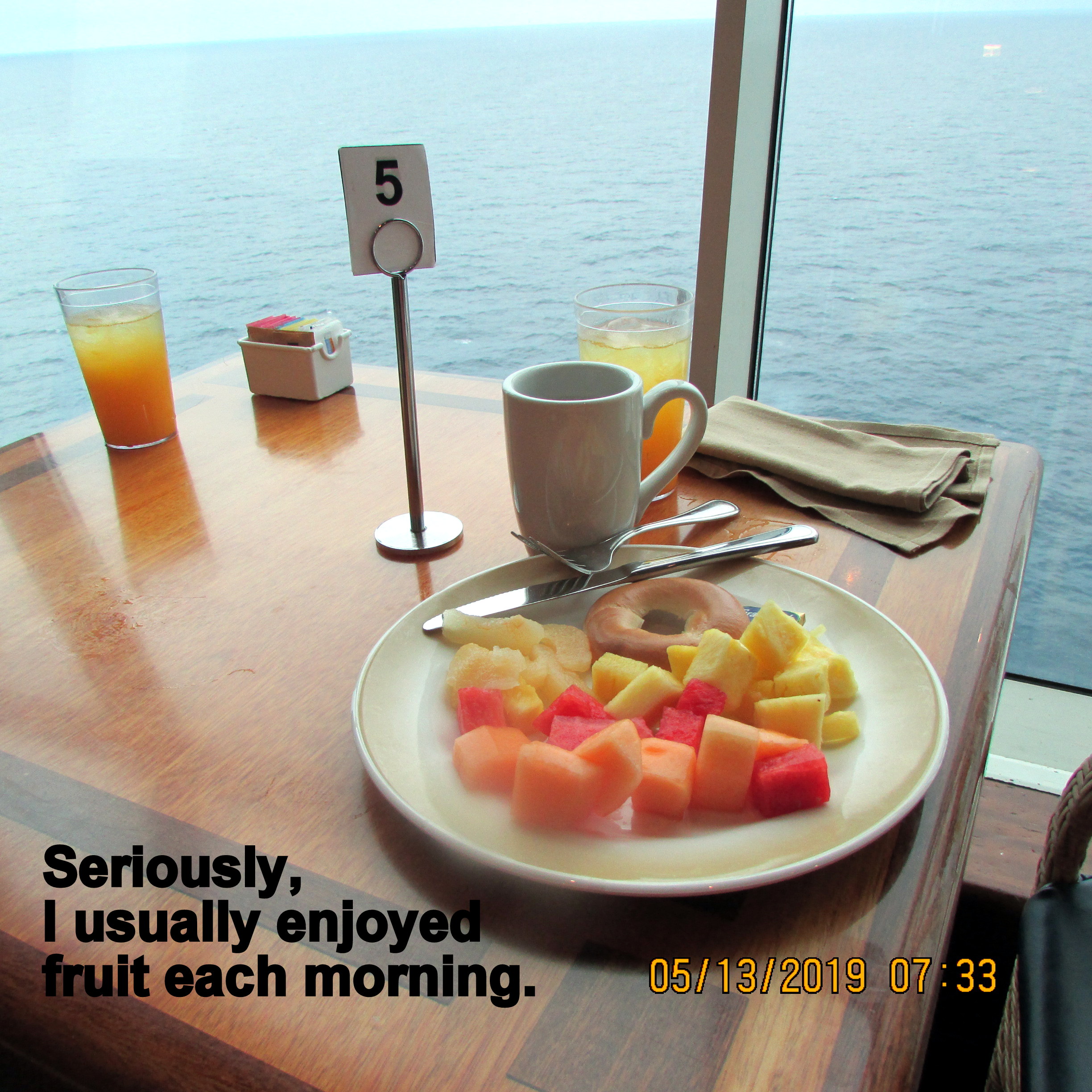 Extremely delicious food on Liberty of the Seas cruise ship from Galveston to the Caribbean. I selected nutritious food items and, gratefully, did not gain weight during the week. Observation: So much wasted food by guests. I took what I could eat and ate everything I took. From the buffet, individuals with two plates piled high and half still on the plate when they departed. (I belong to the “Clean Plate Club” [lol].)