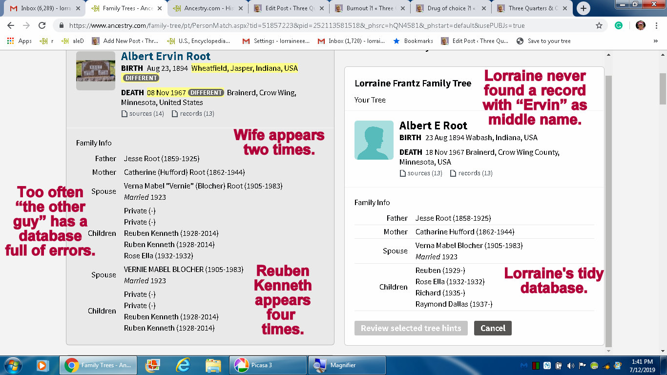 I did digress and write an email message to a “cousin” and share some hopefully helpful information.