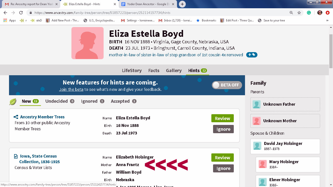 Yesterday I was entering data regarding “Holsinger.” During the night my mind shifted to “Hollinger.” In my early years of research–in LaVerne, California–in 1988-1996–I spent time with Hollinger “cousins.” ~~ It amazes me how my mind recalls information from thirty years ago. This morning I did Ancestry searches based on my memory and developed (accurately developed) many collateral line individuals. To my amazement, there was limited Ancestry Member Family Trees; my data is premier.
