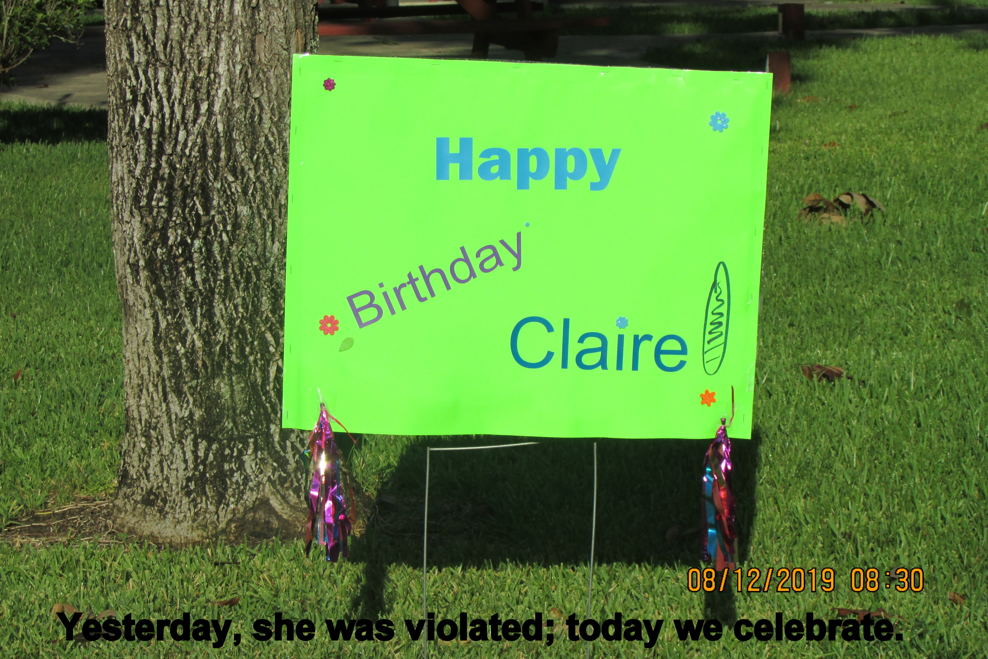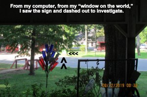 Yesterday, a frightening experience for one old lady. During the time she stepped away from her golf cart, the sign was stolen. The culprit inscribed the word “dead” on her golf cart mirror. The old lady, a long-time resident at Rainbow’s End, was terrified.