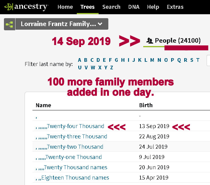 Escalating numbers #2 Sep14 by Lorraine Frantz Edwards The two computers pull me to their keyboard–like a strong magnet. One hundred more individuals added to my database in less than twenty-four hours. Almost the entire day devoted to one man and his extended family. Share this: Click to share on X (Opens in new window) X Click to share on Facebook (Opens in new window) Facebook Like Loading...