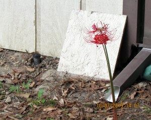 The soil is dry and lacks substance. This flower is a “volunteer”; nothing I planted and totally foreign to this novice gardener.