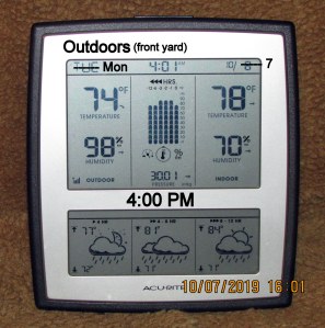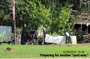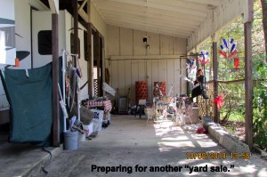Unadvertised “yard sale” but I’ll get the information in the newspaper soon. I “tidyied” the carport (and porch) by “blowing” leaves into an area where riding lawnmower can “chop” and bag. Friends and neighbors have first choice of items. “My prices are negotiable” so (as before) I may not make enough sales to pay for the ad. C’est la vie!
