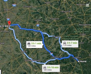 “Bookends” (lol)!! Temperature documented just prior to leaving on a one-day trip and just moments after I returned home. In a manner of speaking, I saw the sun come up and I saw the sun go down. Three-hundred sixty-two miles round trip to Waco, Texas. I’m frazzled!! For six years, I’ve limited my trips to fifteen miles round trip to Livingston for groceries. The long drive in unfamiliar territory was a major accomplishment for this old lady.