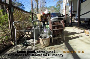 (#1) A dear girl-friend sent three gifts (my only presents). SINCERE THANKS, Deb!! ~~ (#2) Perfect weather for outdoor projects!! (#3) Thankfully, “the old lady” managed to load a lot more things into the cargo trailer. Only one more day to complete the moving and packing. ~~ “Early to bed, early to rise….”