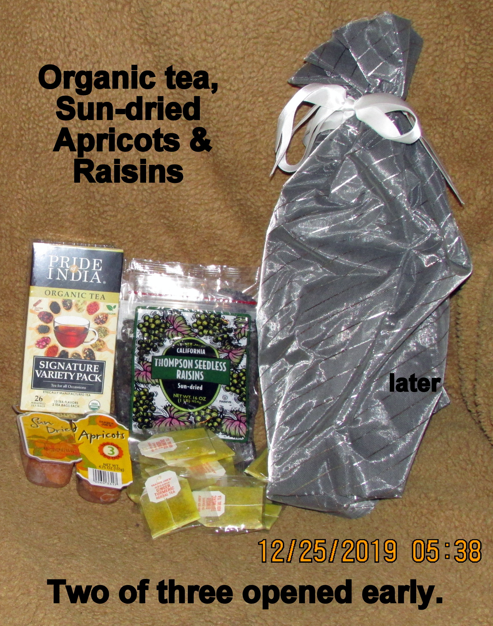 Yes, I was up early Christmas morning (5:00), and curious about the contents of the packages. Deb remembers I buy “organic” and healthy food.