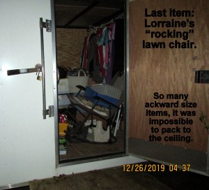 “The old lady” can safely say her ducks are all in a row. The end of this “nightmare move” is within sight. However, “yours truly” (the old lady) is eager for a buyer for the 5th-wheel trailer home.
