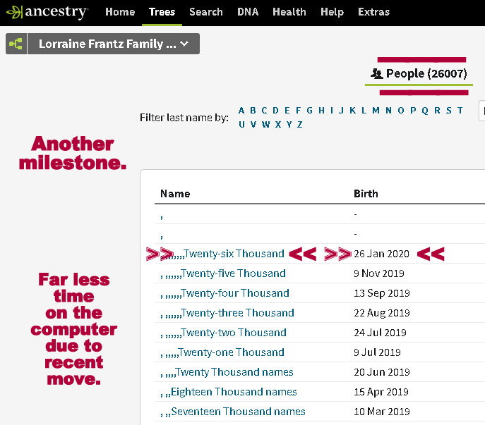 …and not the TV program with that name. The view of my living room before and after the delivery of a folding table. This is another purchase from Wayside. (The TV stand arrived earlier this month.) For the first time since I left Lancaster, California (in 2004), I’ll have a large work area for my genealogy hobby.