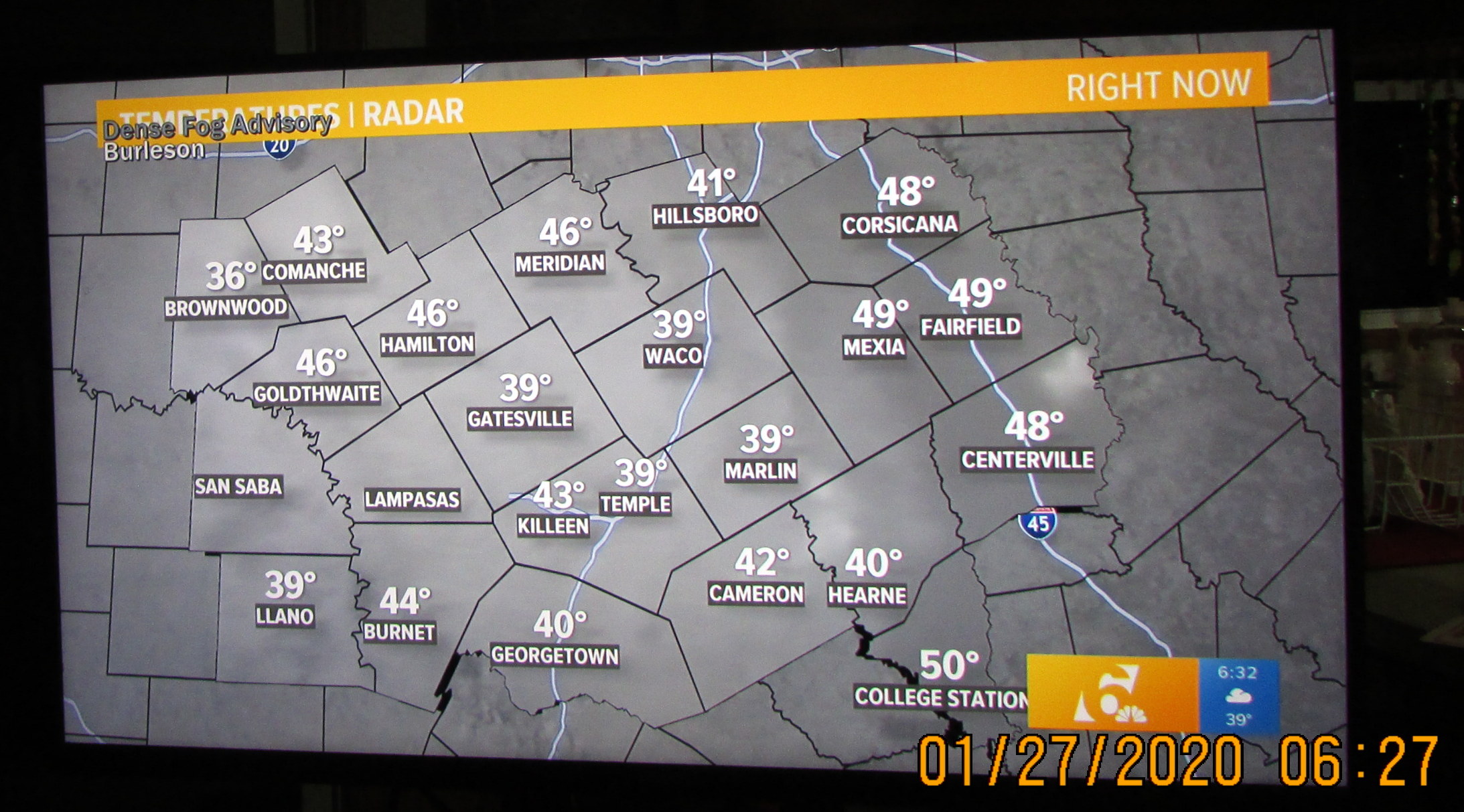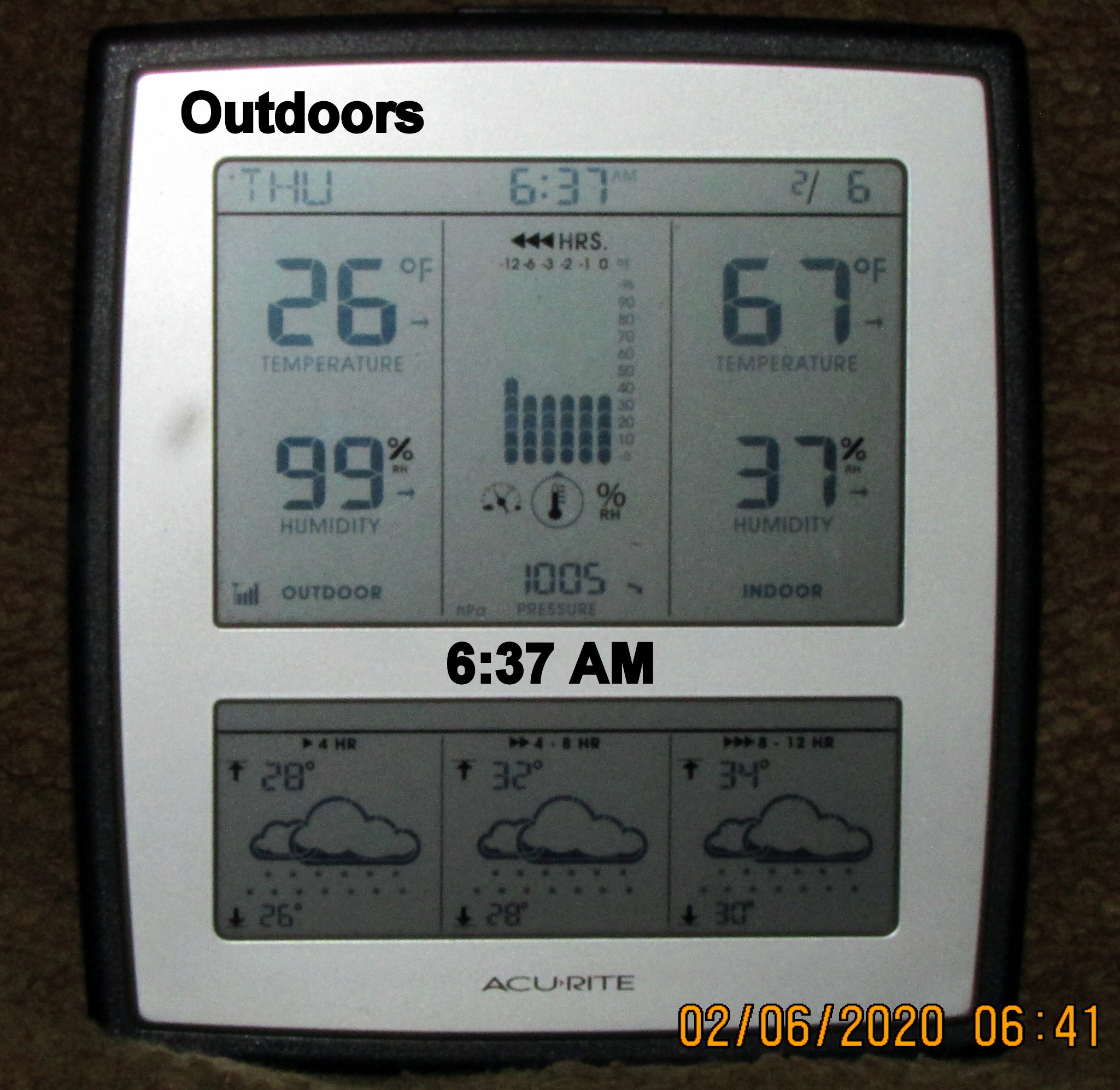 “Sheets” of rain were running off the roof. Seriously, a solid wall of water! Add lightning and thunder and that’s the explanation for a poor night’s sleep. I have several items that may be full of water–items that should have been “under cover.” I just didn’t get “a round tuit.” Procrastination? I think not. There are just so many things I need to do and I spend too much time with Ancestry and computers. OK, I admit to “procrastination.” I should have brought the space heater into my new trailer home. When it’s cold outdoors, I’m cold indoors. I don’t want to elevate the temperature and heat the whole trailer (using propane). Earlier this morning, I was wrapped in my Slanket, in my comfortable chair, watching Today. ~~ At this moment (8:25), it is forty-three degrees outdoors and sixty-five degrees indoors; the indoor-outdoor thermometer says ninety-nine percent rain.