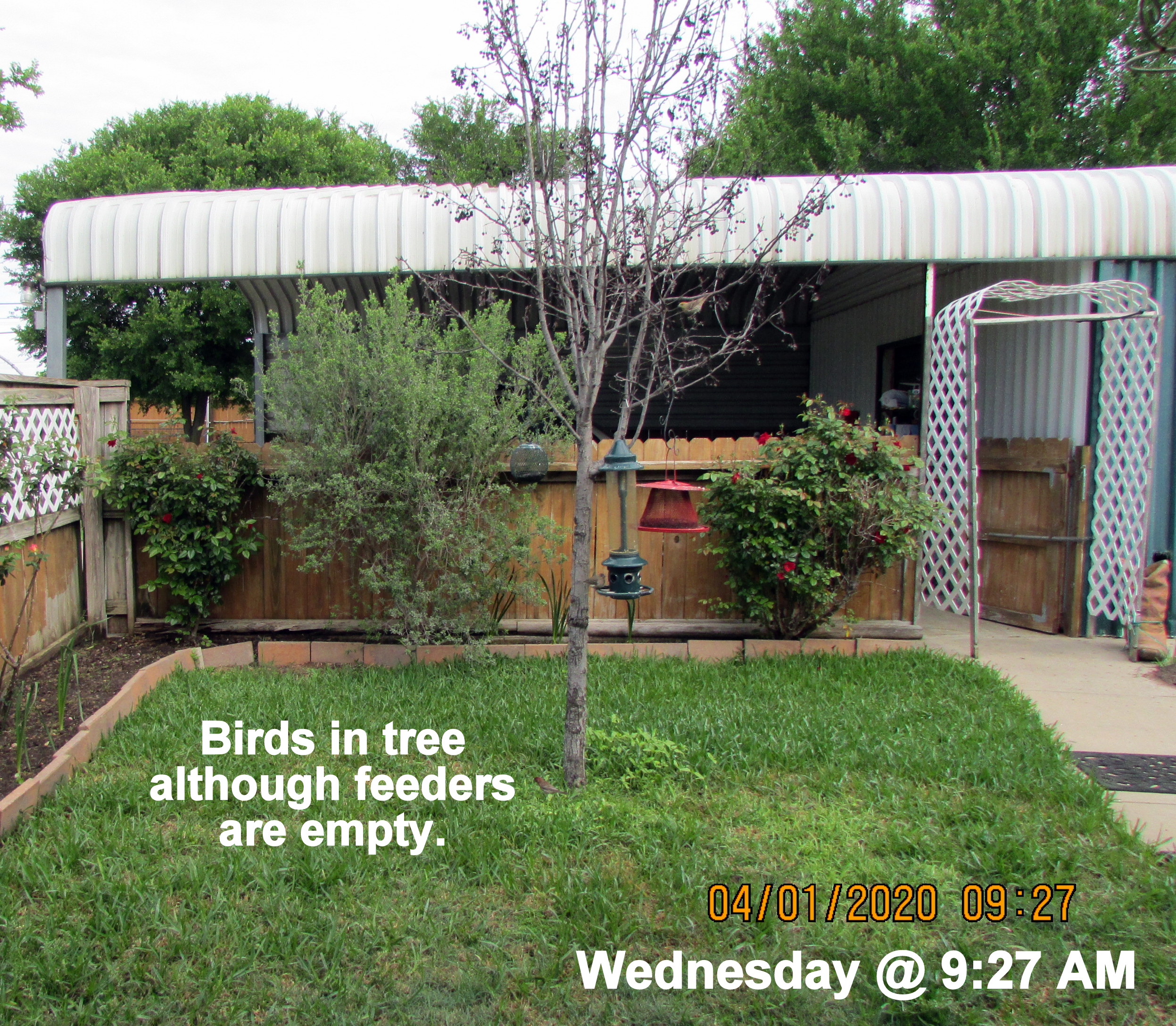 There are several “empty” limbs. Those treetop limbs need “sanding” so a bottle can slide past the bumps. I’m saving for another occasion because enough climbing a ladder for one day. It wouldn’t be humorous if “the old lady” fell off the ladder!!