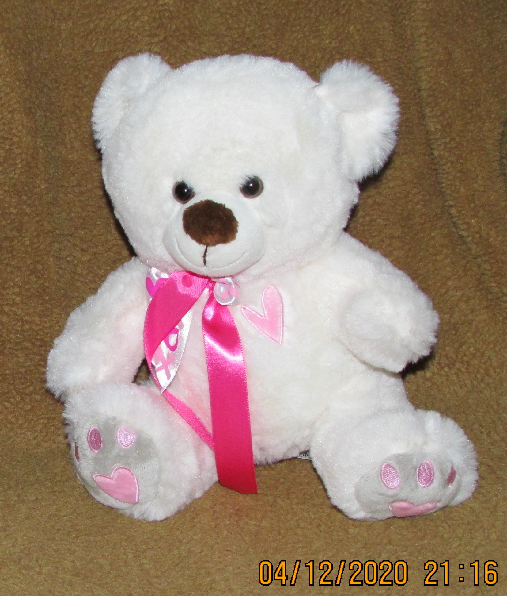 This cute little bear was a gift on Valentine’s Day from the owner/manager of the RV Park–my new home. It came with a long-stem red rose!! I’m told he does this annually for all the lady residents.