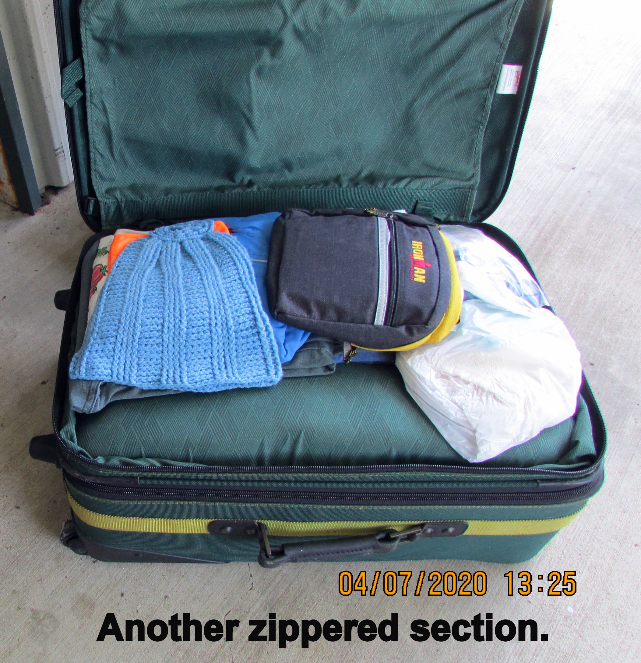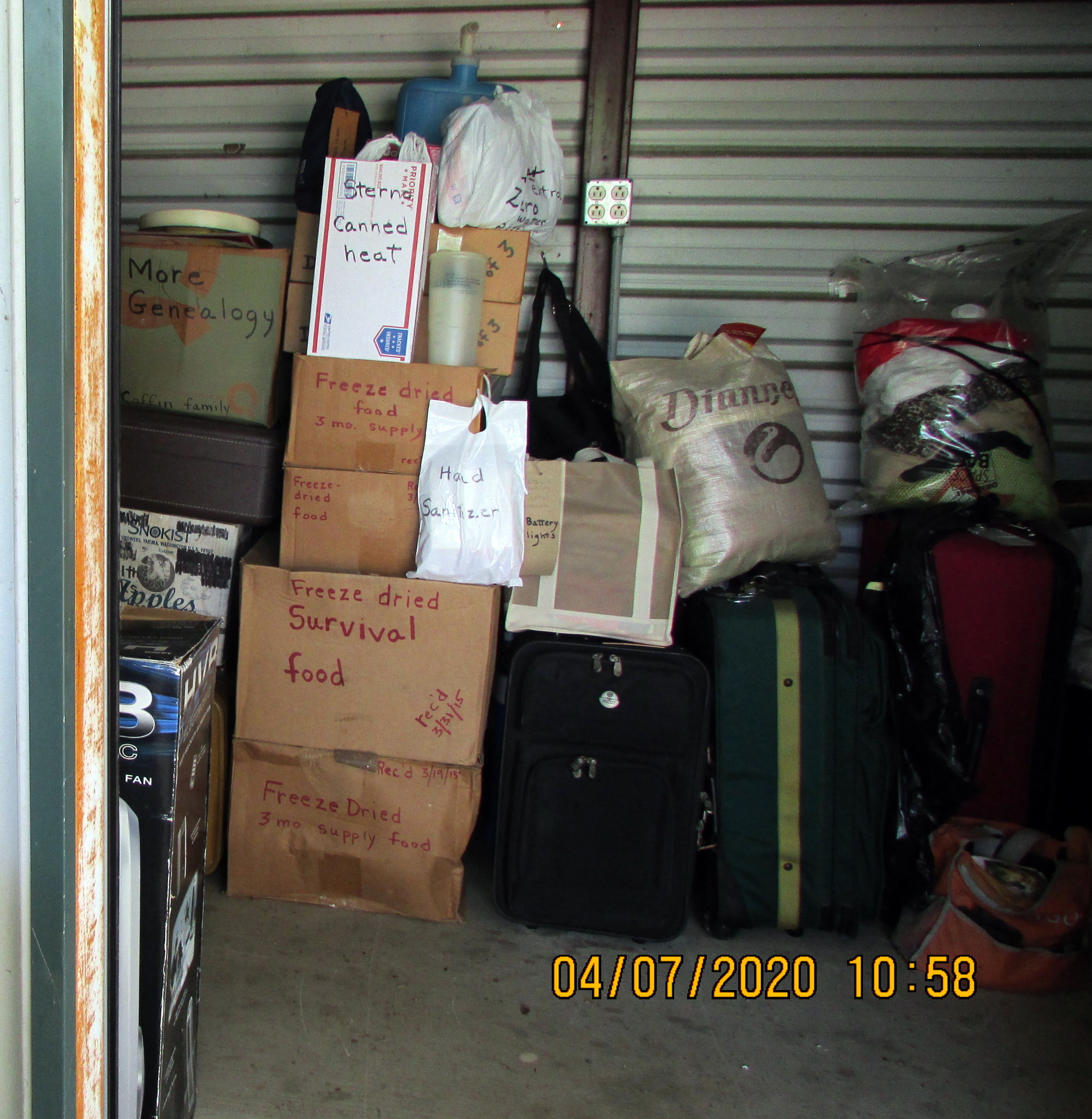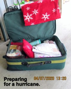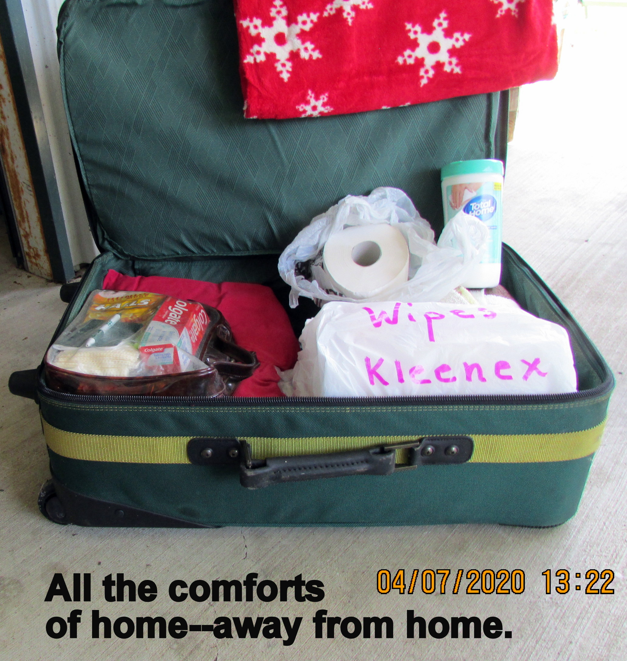 “The old lady” is very patriotic This image caught her eye and begged to be photographed. ~~ While “the old lady” was a resident at the Escapees CARE Center, she prepared for a possible evacuation from Livingston to Lufkin. Hurricane threats!! The suitcase contains flashlights, batteries, cell phone charger, etc., in addition to the items visible in the pictures. She planned and prepared for all the CARE residents.