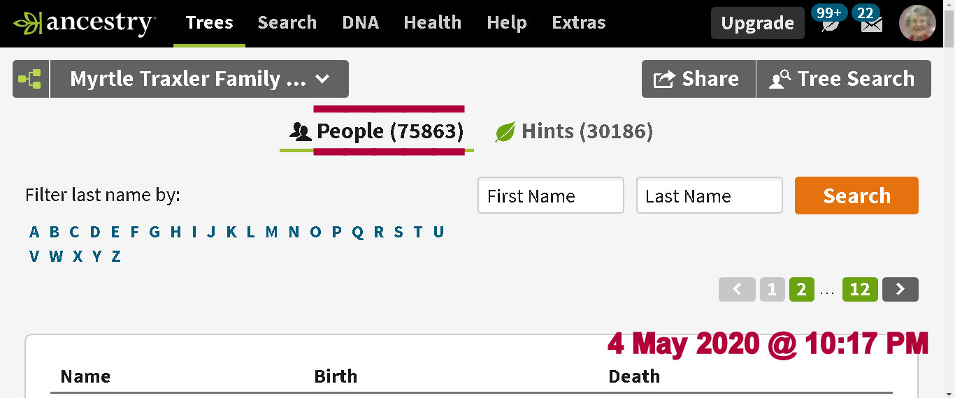 I turned off the air-conditioner half-an-hour ago (planning to go to bed). My trailer home is uncomfortably HOT. But I can’t seem to find a “stopping point” with Traxler families. See those numbers? They represent people who will eventually have sources added to their record.