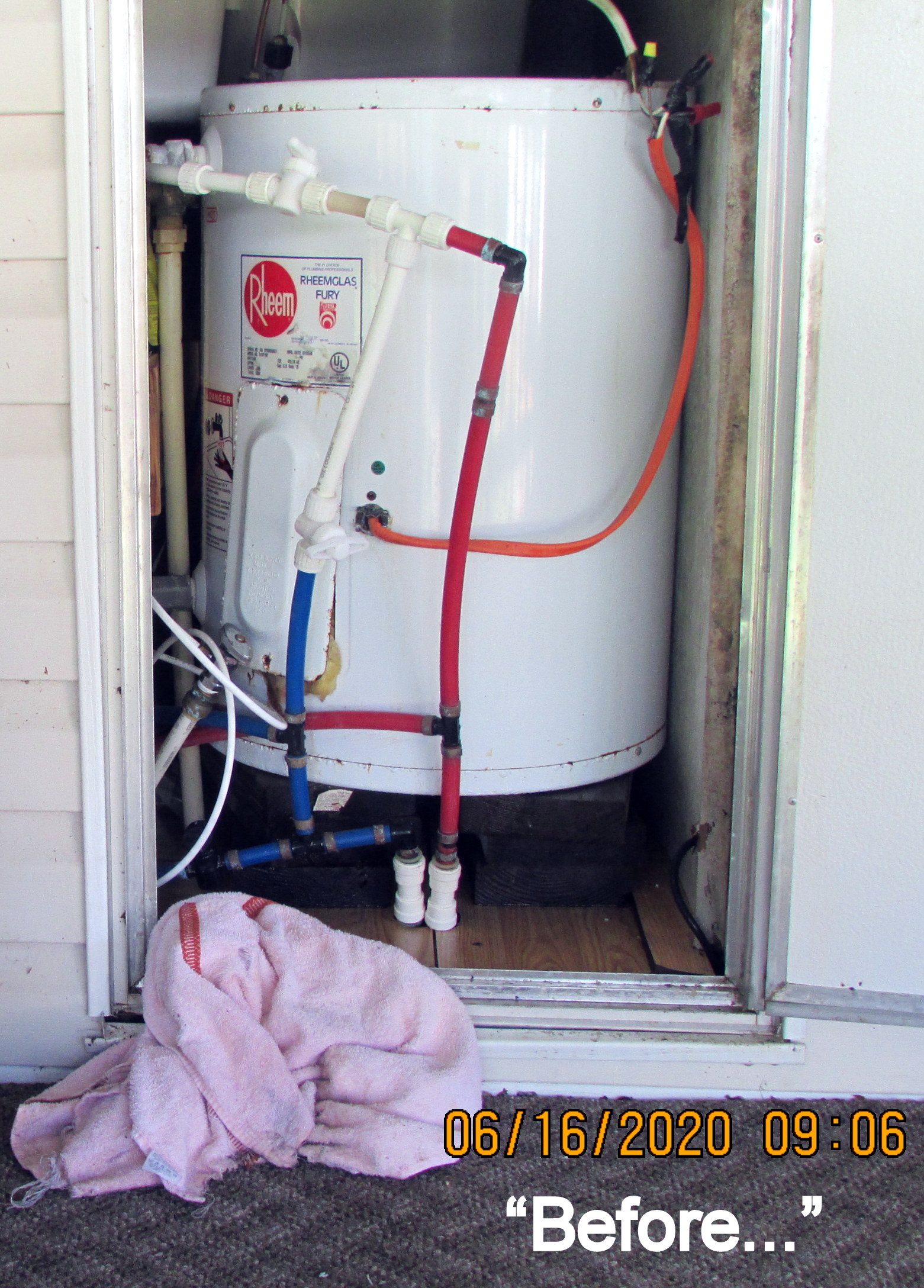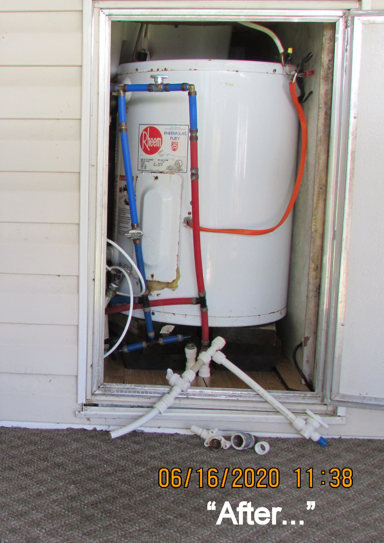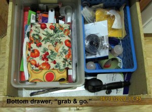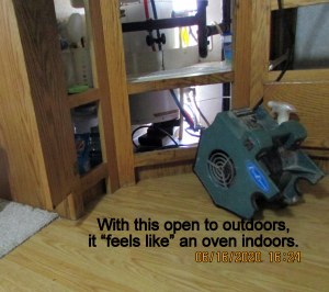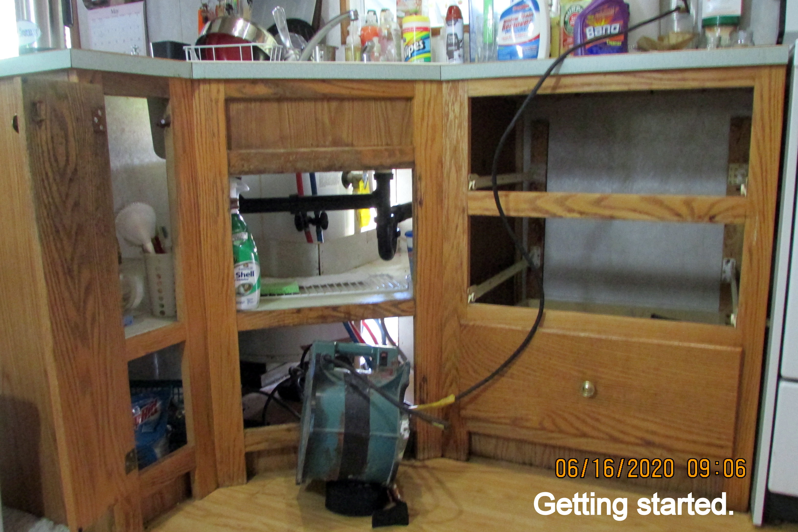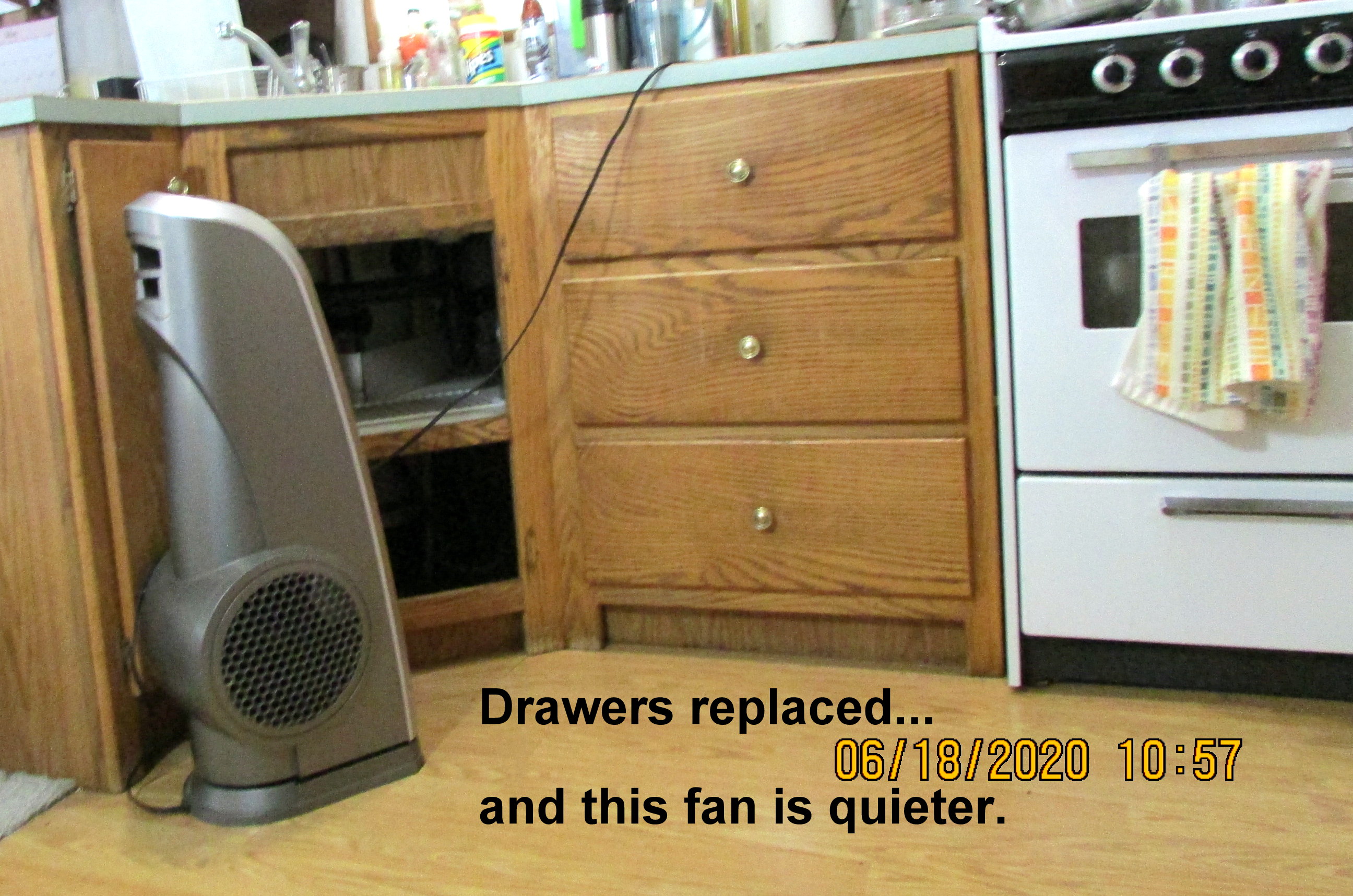 Other projects get my attention; I do things besides “climb trees.” It is my hope and prayer that I never have another mold problem. **If**a problem, the drawer contents will transport easily. I won’t replace the cabinet door; I hope and pray more ventilation (around hot water heater) will mean no more mold or mildew.