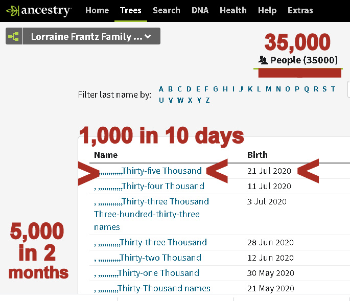 I’ve considered myself very knowledgeable about my Frantz family and collateral lines. I’ve considered myself quite knowledgable about Ancestry. Recently I did a blog message about “stump the expert” and admitted that I was “stumped.” Well, today, I am “stumped, stumped”!! I think you need to point out that Lorraine has (Xyz) entered incorrectly.