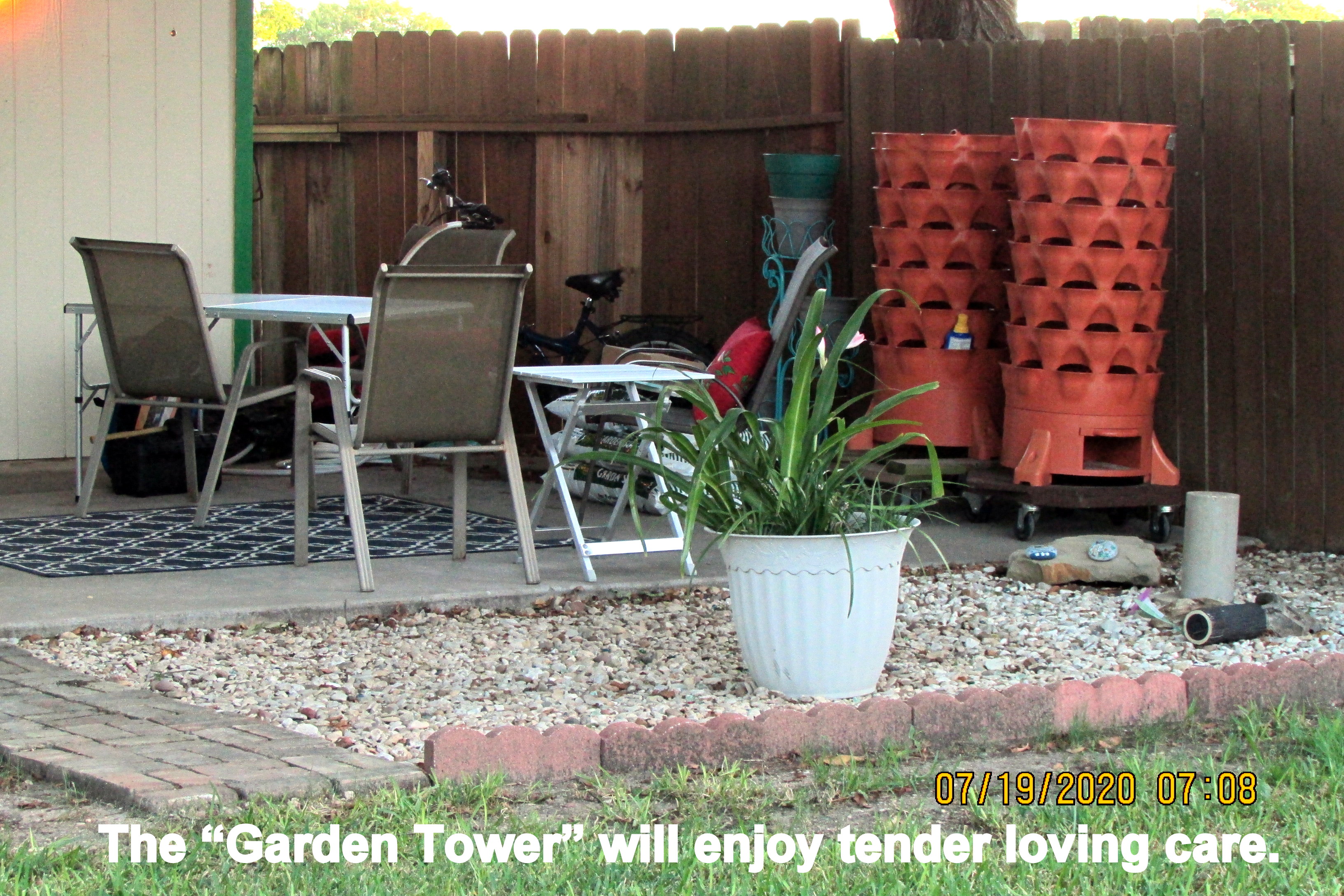 A strong, considerate resident to my rescue. He helped me roll the Garden Tower(s) across the grass to their new home.