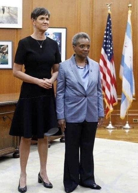 I actually thought it was a joke. But no, it is not. This is the Mayor of Chicago, Lori Lightfoot, & her wife, the First Lady of Chicago, Amy Eshleman. They’re comfortably overseeing the mass murder of blacks by blacks in Chicago.