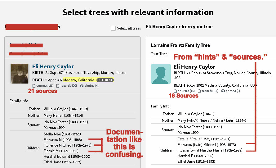 Lorraine’s not perfect but she strives for perfection in her Ancestry database. Errors like this are among “pet peeves”!! It took approximately four hours to “get it right” and perhaps one-hundred individuals added to the database. Oops, I should have highlighted Mary (who?) Nebre/Nehre/Lehr in the first image (below). She had been confused with another “Mary” and it was important to accurately document the two women (both “Mary Neher” are very distant cousins).