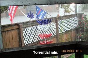 Postscript: Less than half-an-hour since I published this… and now we have torrential rain!! Less than an hour since I was riding around the Park!! ~~ My lawn needed watering!! ~~ “Showers of blessings, showers of blessing we need!!”