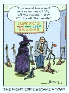 Did “they” come with the cartoon?? Perhaps a friend perceived this was going to be “a bad day“ when she sent the message in the wee hours of the morning? No, this “witch” didn’t “fly off the handle” but she spent an hour on the phone with her Internet provider. It’s a mystery how I could have email (messages) but no access to the Internet.