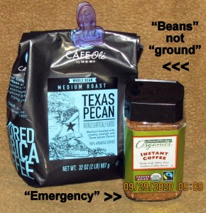 On September 29th I wrote a message titled Another boring message and I confessed to the mistake of purchasing “beans” rather than ground coffee. I used the “emergency coffee” but did not enjoy it. I searched the Internet for details about “the best coffee grinder.” OMG, there is such a variety! My needs are simple (imho) so I chose the “simple” stainless steel model. So simple: Ordered on the Internet and delivered to my mailbox.