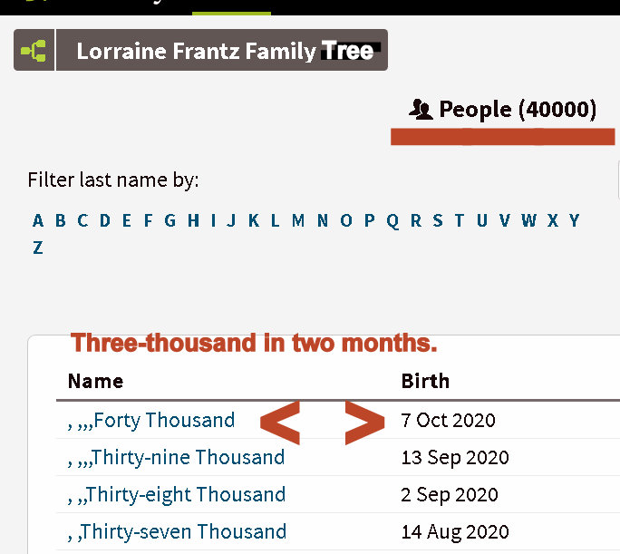 Read the poem–and laugh. A friend sat on my porch this morning and I eagerly offered to climb his tree. Here I am, five hours later and ninety-nine names documented (with sources) in his tree.