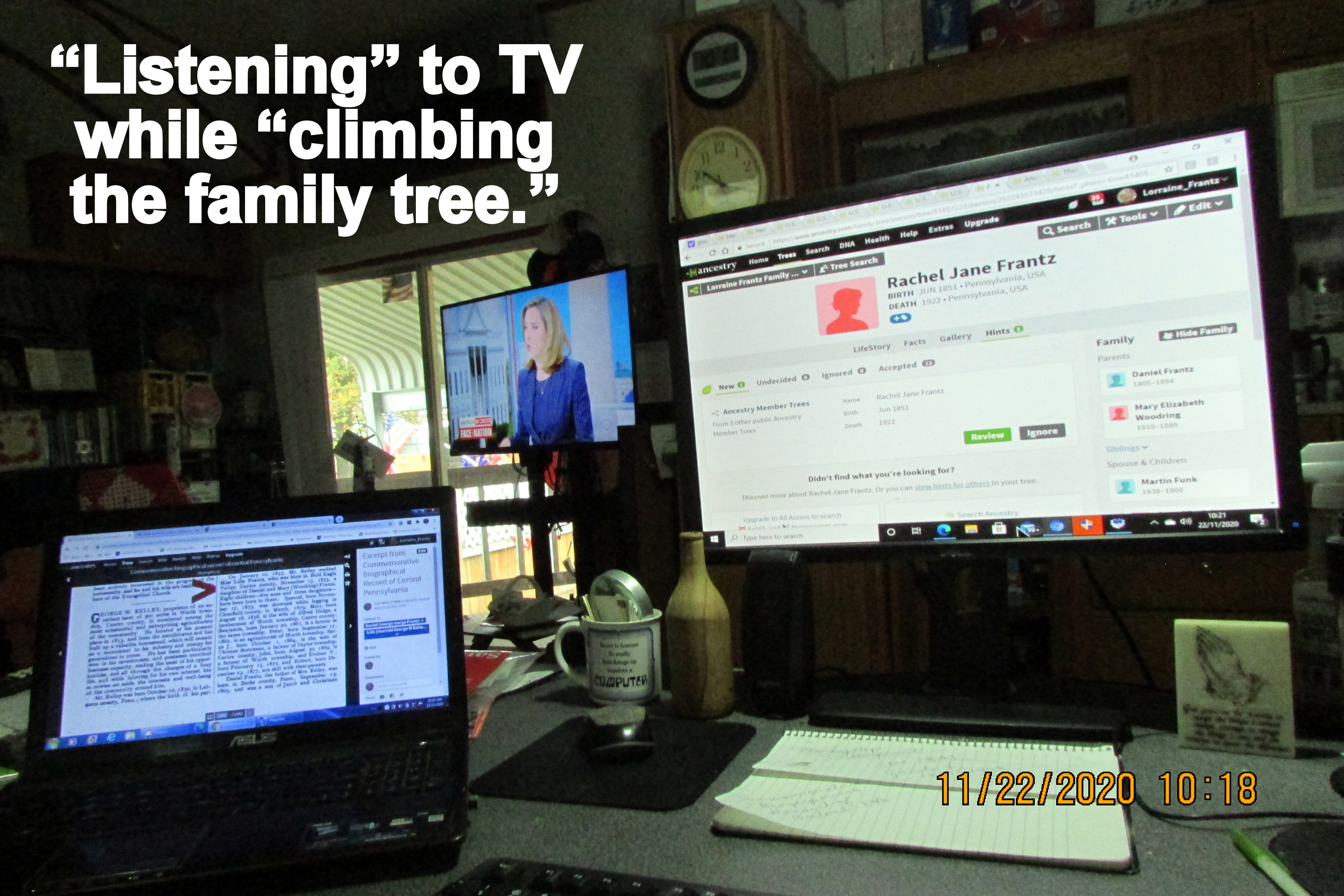“Cousin” sent three obituaries in three days!! OMG!! My peers are passing away at a rapid rate. I haven’t spent any time at the computer “doing genealogy.” It’s a cold, cloudy day in Waco, and “yours truly” has done two loads of laundry and some reorganizing of clutter in the living room. Indoor stuff. Recently, I brought numerous things indoors, from the storage unit, with the intention of sorting, selecting, and discarding. Counting my blessing for a washing machine, and dryer, so I can do laundry in the convenience of my own home. For many years, I’ve used laundrymats. Counting my blessings that I’m not sick with the Coronavirus. A resident (here at our RV Park) tested positive but he was “out and about” without a mask.