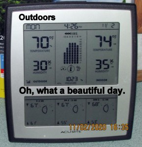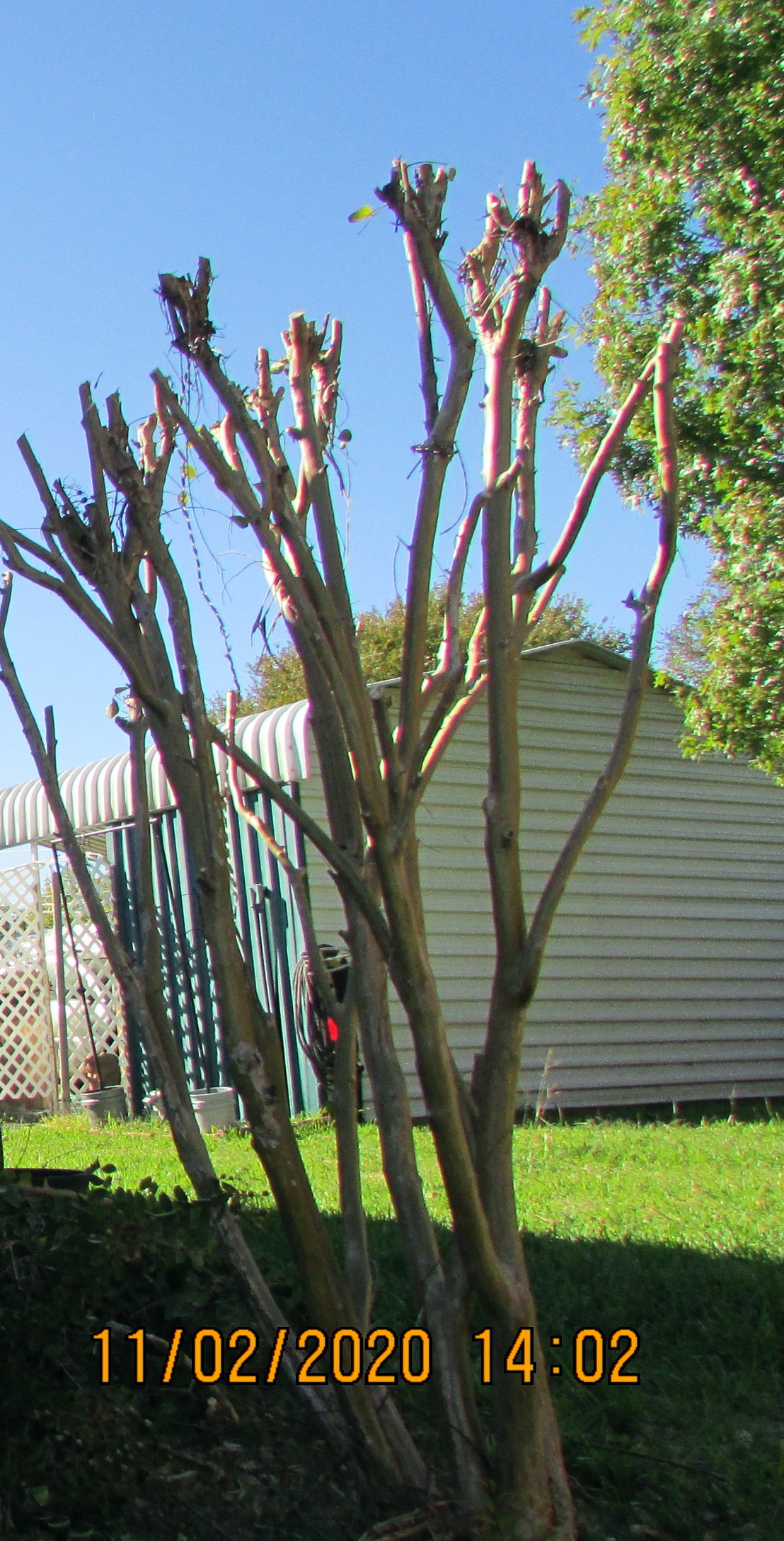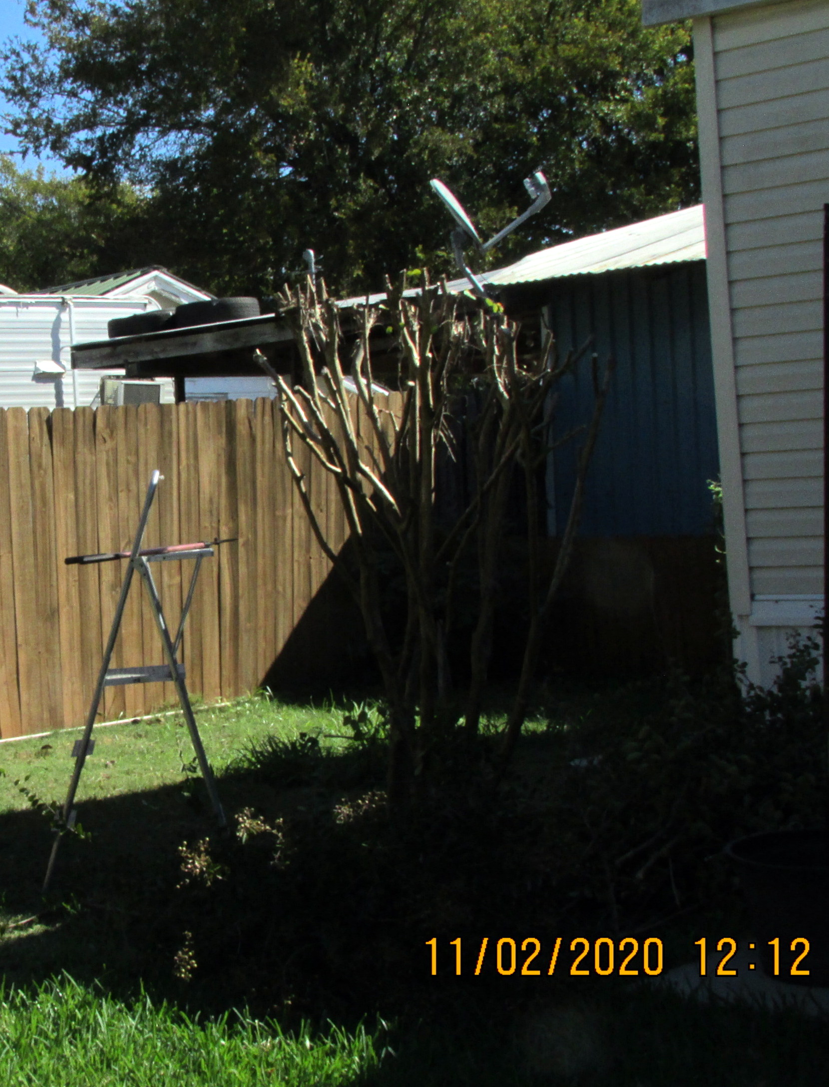 The blooms were gone; the bush needed to be trimmed. A neighbor said not the right time of year to prune. It’s the “right time” for Lorraine because of “perfect weather”—and she needed to ignore the computer and TV, and get some exercise. Climbing a different tree, ha. (Still tired.)