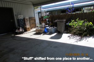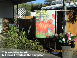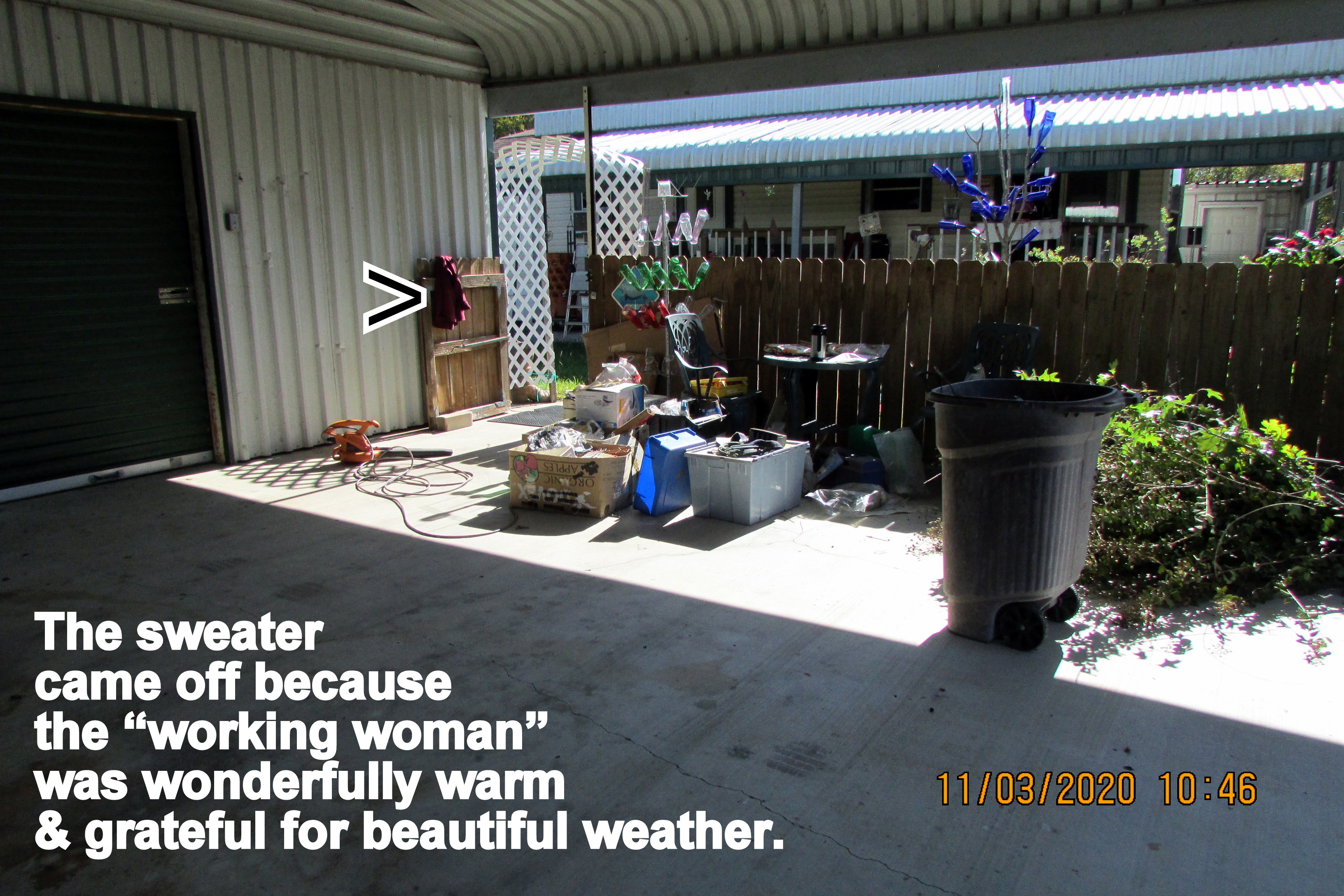 No, I won’t climb the ladder to put light bulbs in the fixture. My “angel” helper is due back for a project or two. ~~ I “like” the progress I’ve made in the yard and carport.