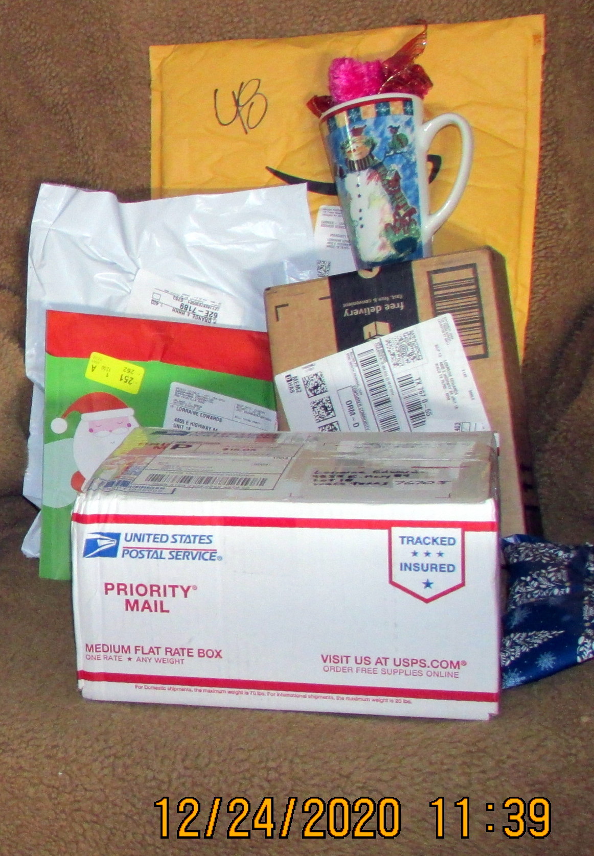 Three–or more–of the gifts are from my Christmas Angel. Earlier this year, she sent an array of masks–and has suggested (time and time again) that I “get out of the house; go shopping.” Or, she would implore: “Take a drive; go through a ‘drive-in’ and treat yourself.”
