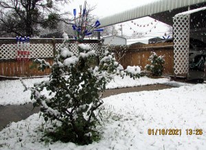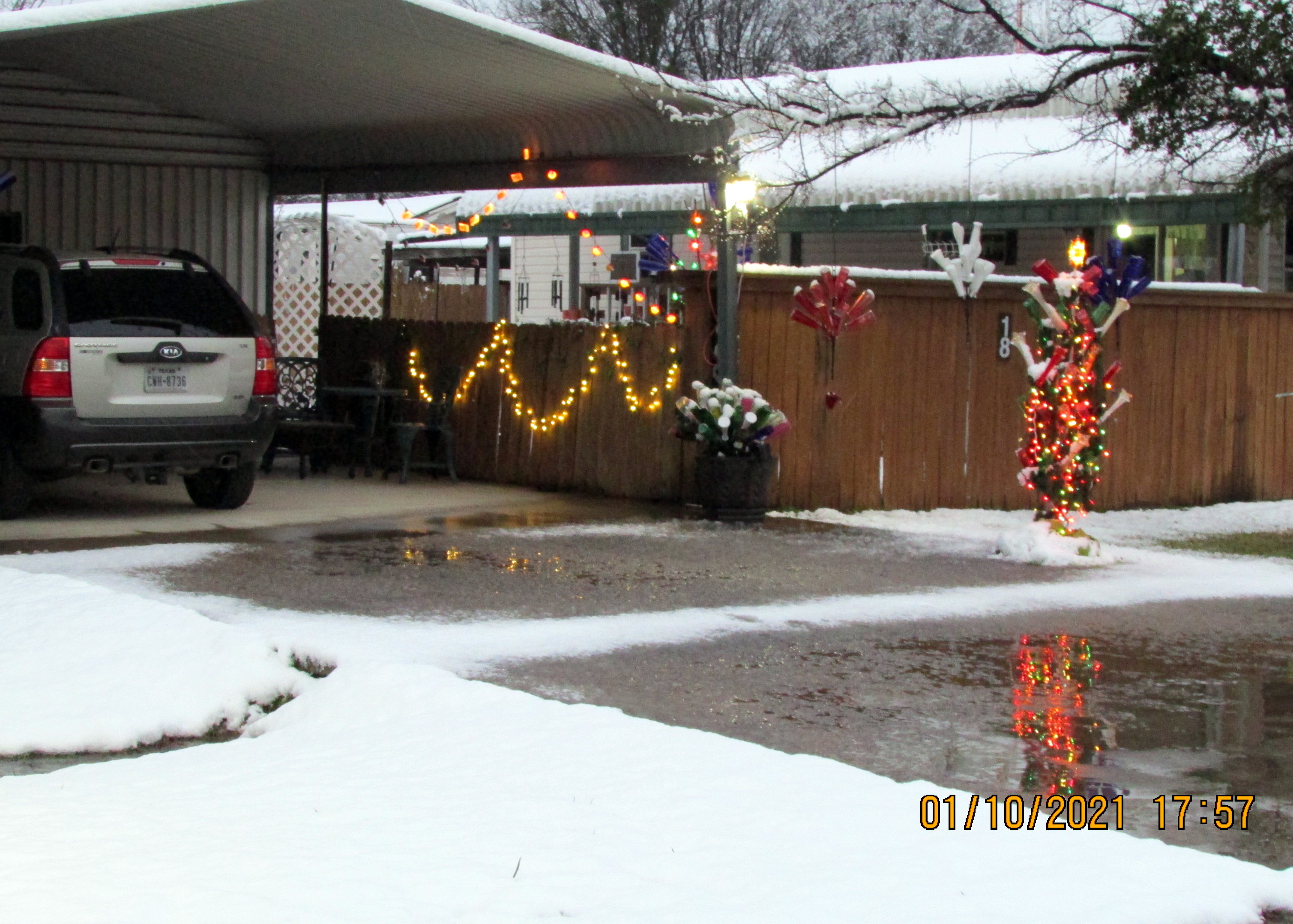 Snow !! Jan10 by Lorraine Frantz Edwards 8:55 AM: A mix of snow and rain in Waco, Texas. I won’t bore you with my weather report. . 9:30 AM Postscript: On second thought, several pictures. . 11:35 AM Postscript . 2:00 PM Postscript . 4:30 PM Postscript . 6:00 PM Postscript . 7:30 PM Postscript: The snow makes the lights seem to burn brighter. Share this: Click to share on X (Opens in new window) X Click to share on Facebook (Opens in new window) Facebook Like Loading...