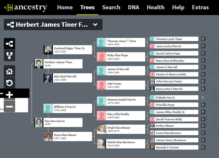 The project was started in November and abandoned after several weeks. I ran into some negative information and did not want to give “a negative gift” at the positive time of year, at the birthday of our Lord and Savior, Jesus Christ. After the first of the year, I confessed to the withdrawal of the gift. “That’s OK…, I want it anyway.” The research continued and was ready to print. A family member looked at the information (in my Ancestry.com database) and delivered the bad news “the father is wrong.” For two days, I have worked to correct my error and believe it is accurate. The image is only a fraction of the eight-hundred-thirty-two individuals in the database and several hundred (several thousand) sources. Gratefully, the “negative stuff” isn’t in this tree. ~~ I’m going to walk away from Ancestry.com for a few days (or a couple of weeks) so other projects can enjoy my time and attention. I’m sick and need to work on my health.