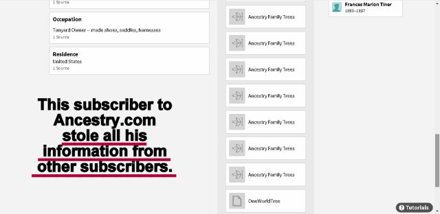 This is the most obvious illustration of a lazy individual stealing his family history from folks (like Lorraine) who search for, and document, the family with sources.