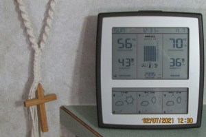 The indoor-outdoor thermometer received my attention and I (finally) successfully established communication between the outdoor sensor and indoor receiver. ~~ Essential oil wafting pleasant odor in my living room. ~~ In the yard, Spring garden flags replaced the Winter flags. ~~ Tabletop with the computers cleared of clutter. It’s just the beginning because dozens of projects are going to receive attention.